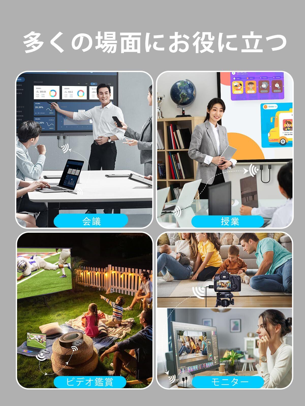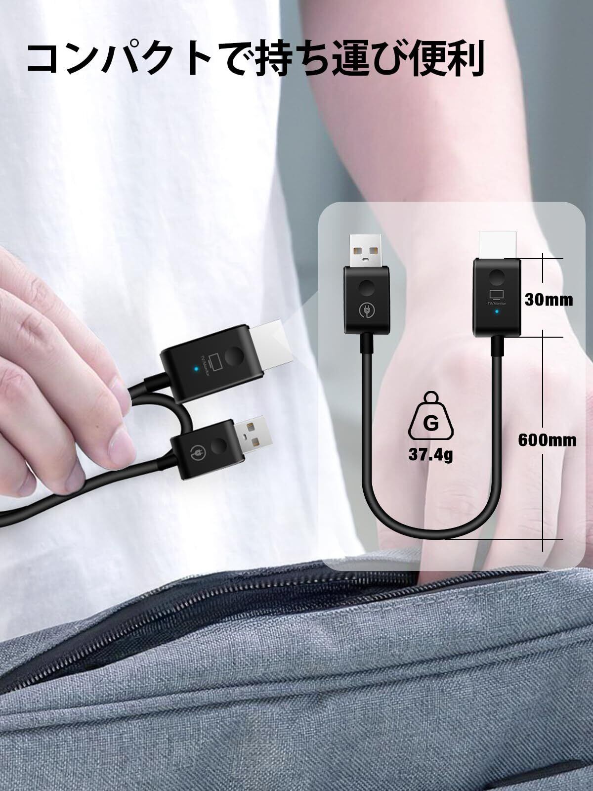 【コンパクト設計、幅広い互換性】重量約37.4gで、簡単に収納できるMoman CS6は、さまざまな表示モードを自動的に識別して設定できます。受信機は、テレビ、モニター、プロジェクター、その他の大画面デバイスと互換性があります。一方、送信機はコンピューター、DVカメラ、ビデオカメラ、PS3/4、セットトップボックスなどのデバイスに接続できます。会議、研修会、教育訓練、ホームシアターに最適です。
