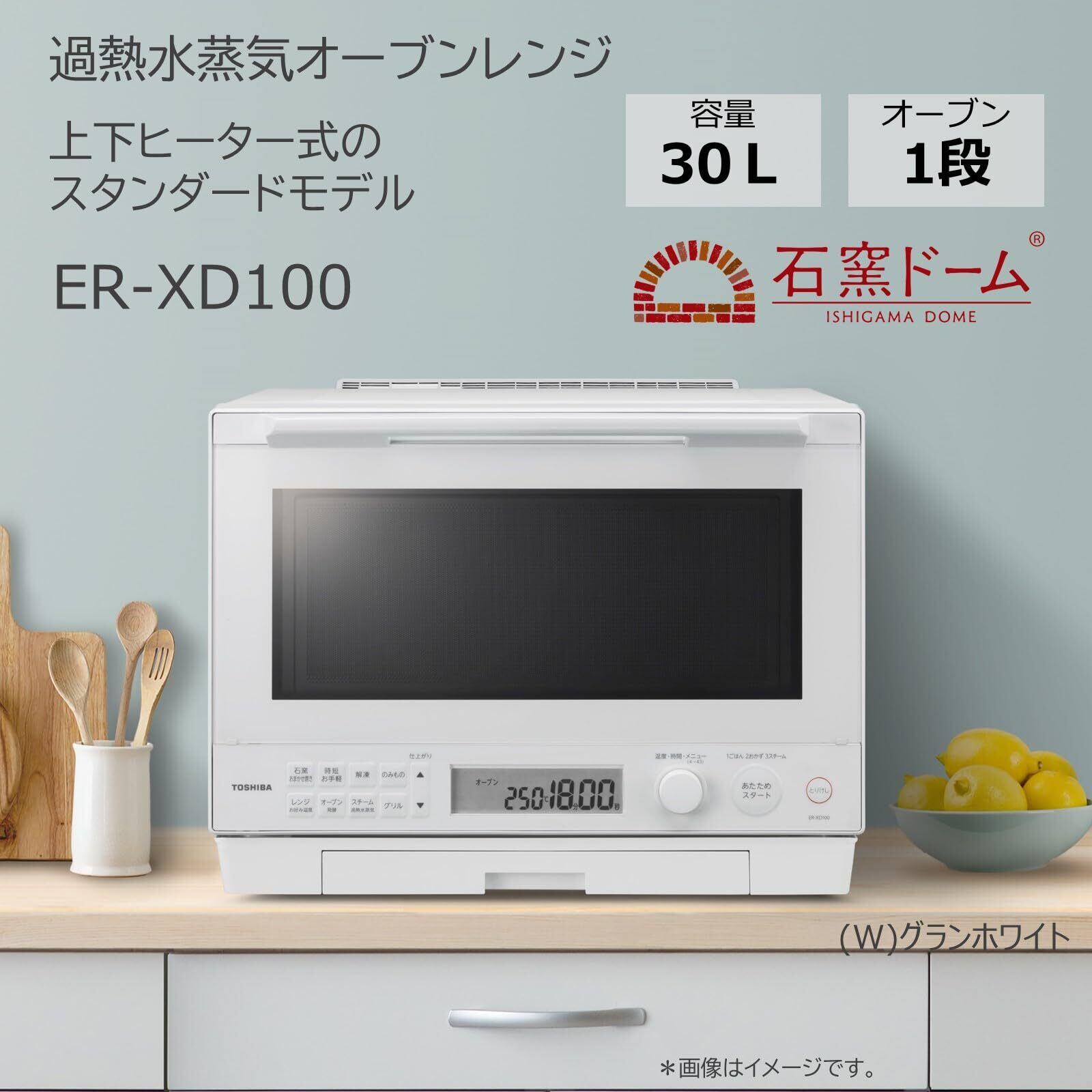 【在庫セール】TOSHIBA(東芝) スチームオーブンレンジ 石窯ドーム 30L ER-XD100(W) グランホワイト 1段調理 手間なしお手入れ 簡単操作 フラットテーブル オーブンレンジ 電子レンジ
