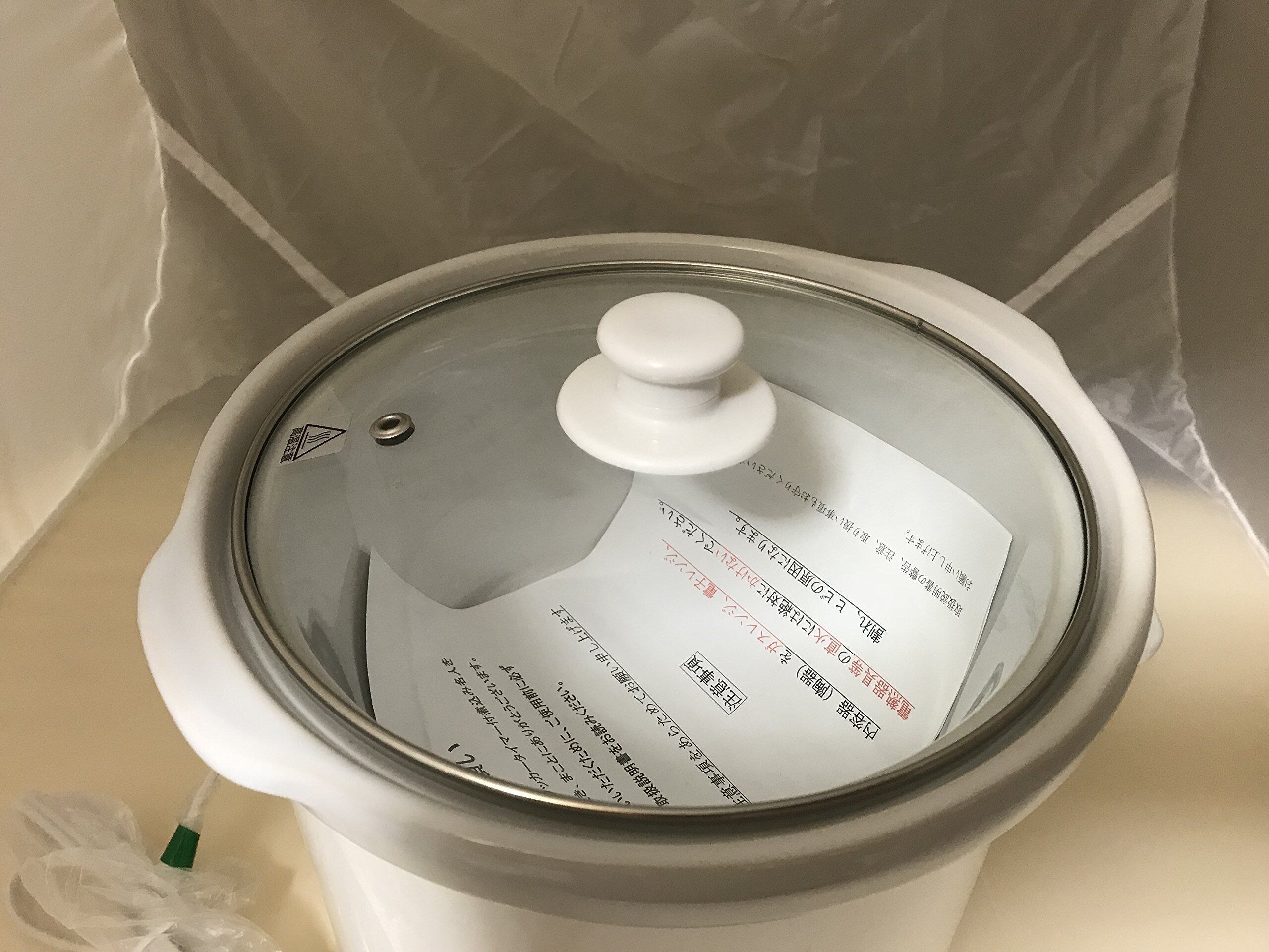 <b>素材:</b> フタ:強化ガラス/つまみ:PC/容器:陶器/容器取っ手:陶器/本体:スチール/本体取っ手:PC