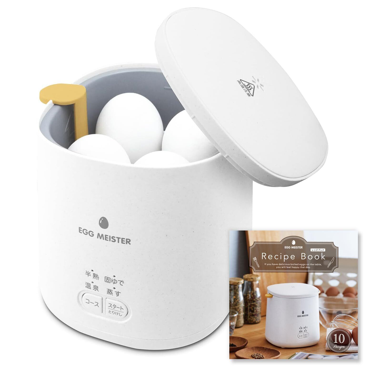 メニューは半熟/固ゆで/温泉/蒸すの4種類ございます。温度調節が難しい温泉卵までこの一台で簡単に作れます。また、付属のケースを使えば、茶碗蒸しやプリン、サラダチキンやガレットまで手づくり“蒸し料理”もできてしまいます。10品目掲載のレシピブックも付属しており、朝食やお弁当作りはもちろん、ダイエット食やおやつ作りなど幅広い料理をお楽しみください。