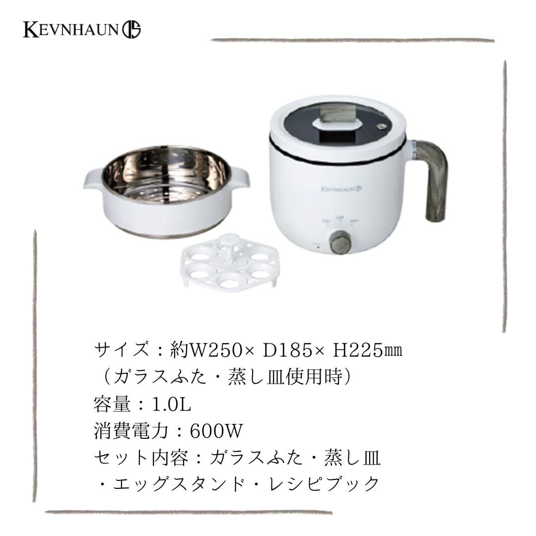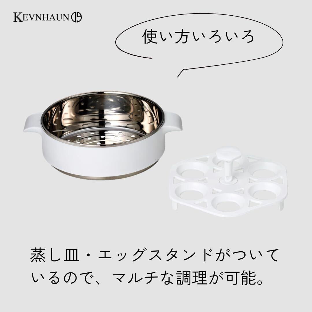 【2022最新】KEVNHAUN ケヴンハウン 一人用鍋からゆで卵まで調理可能電気丸ポット レシピブック付 エッグマイスター せいろ せいろがついているので、温野菜が簡単に作れる 蒸す間にゆで卵を同時進行で作る事ができる オリジナルレシピ付 蒸し皿、エッグスタンドがついているので、マルチな調理が可能です 電動せいろ エッグマイスター マルチ調理ポット DS.8762