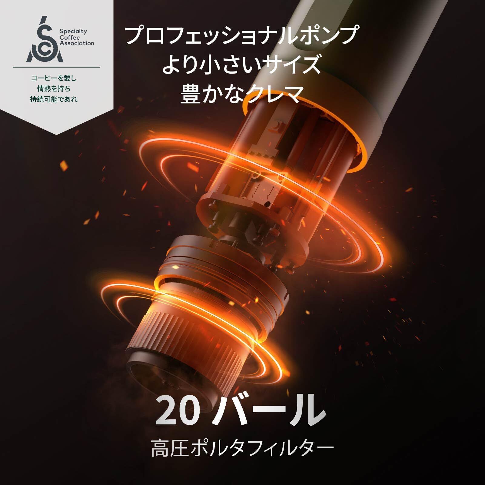 【高速自己加熱&豊かなクレマ】:OutIn Nano コーヒーマシンは、1.7 オンスの 77°F(摂氏 25 度)の室温の水を 200 秒以内に 198°F(摂氏 92 度)まで加熱します。20 バールの圧力により、プロ仕様の卓上コーヒーマシンと同様の豊かなクレマを伴う滑らかな抽出がされます!