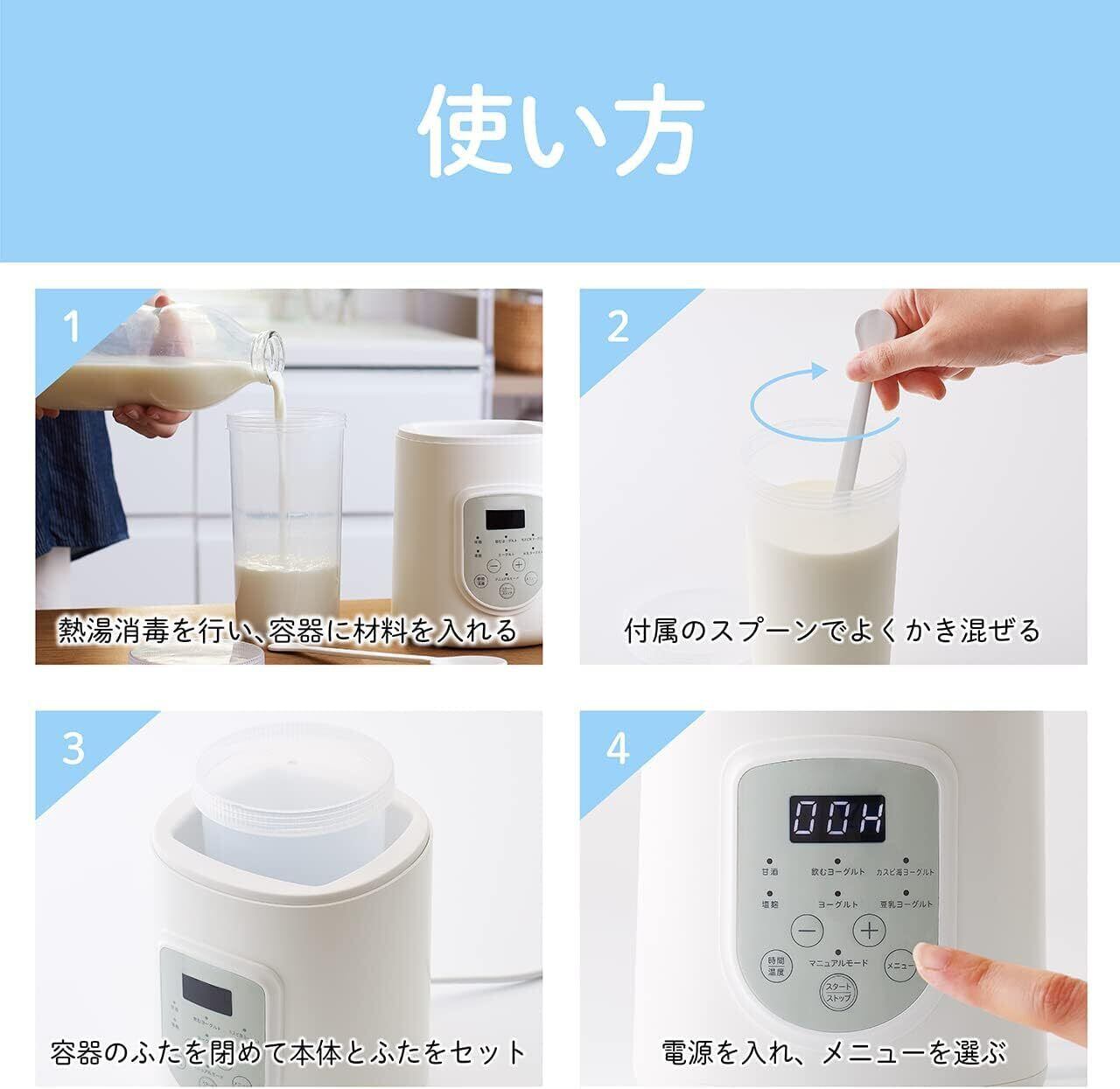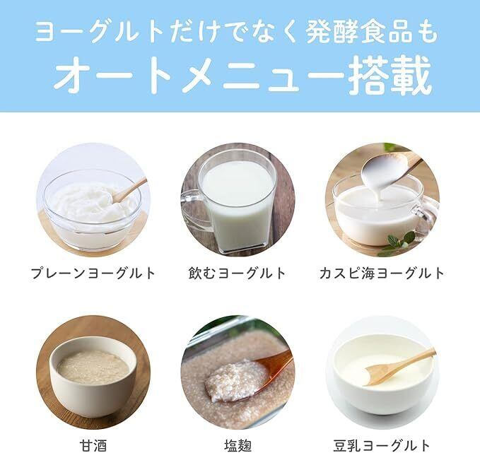 ️6種の自動メニュー(ヨーグルト、飲むヨーグルト、甘酒、カスピ海ヨーグルト、塩麹、豆乳ヨーグルト)