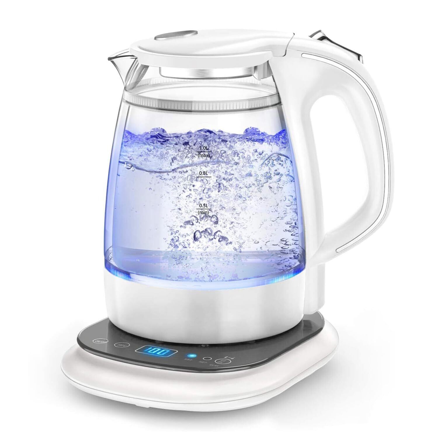 ハゴオギ (HAGOOGI) 電気ケトル ガラス ケトル 【8段階温調&24時間保温】 無臭無害 二重構造 LEDライト付き 火傷防止 自動電源オフ 空焚き防止 触れても熱くない 湯沸かしケトル ポット 電気ポット 耐熱強化ガラス お茶/コーヒー/粉ミルク/お湯/甘酒