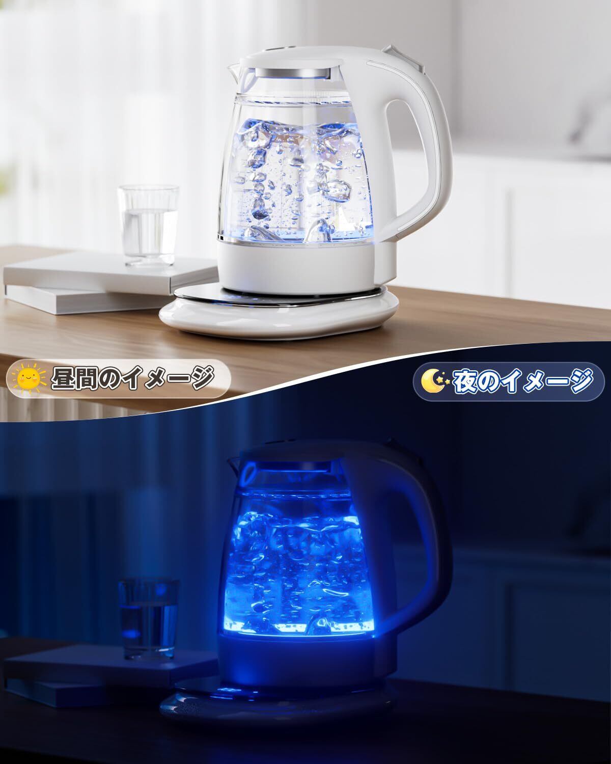 【健康で安心!無味無臭】プラスチック製のケトルと異なり、ガラスは化学的に安定しています。加熱しても有害物質が溶け出すリスクがほとんど無いので、お湯や飲み物に化学物質が混入する心配が少なくなります。お湯や飲み物に味や匂いが移ることがないので、飲み物本来の風味を楽しむことができます。