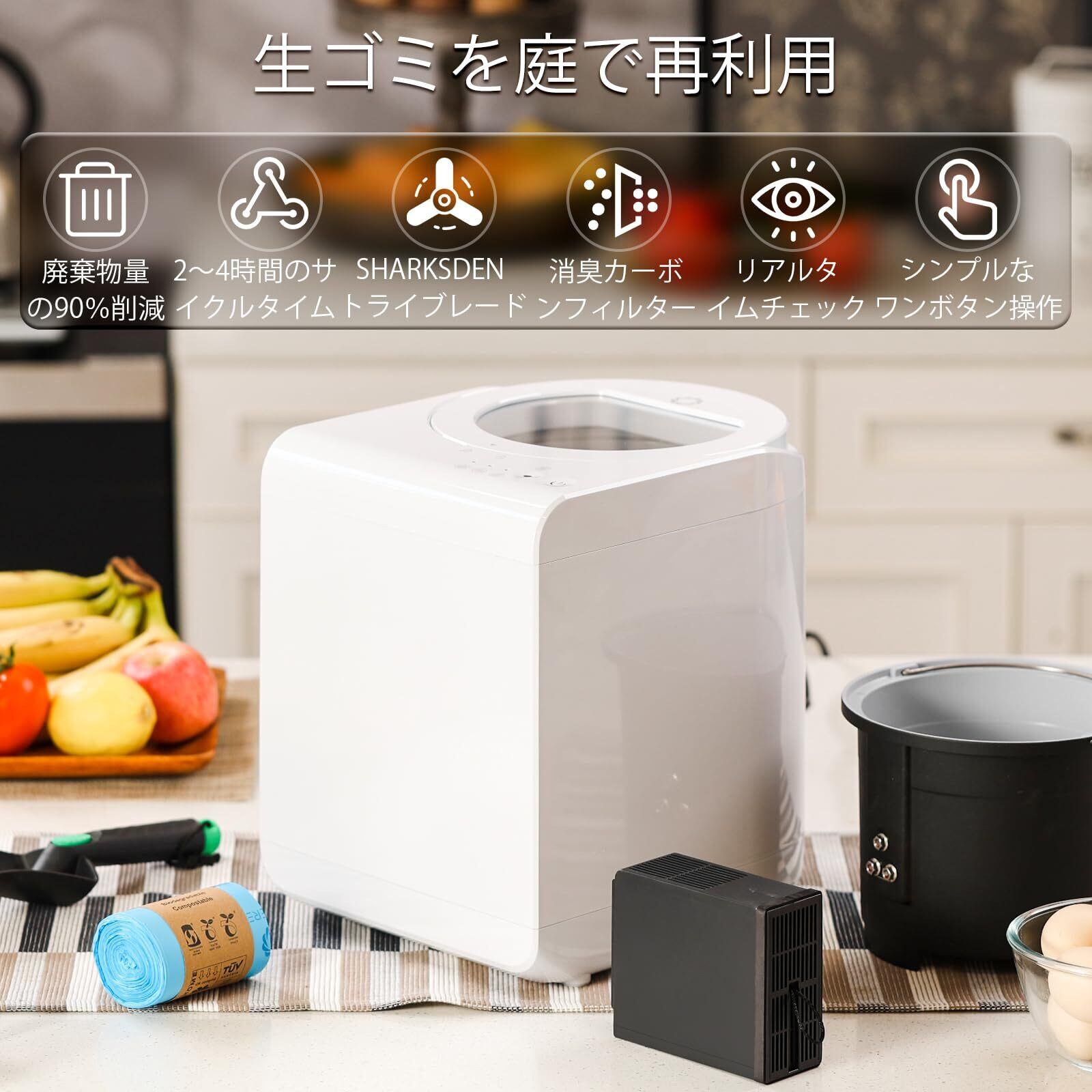 【在庫処分】Airthereal 生ごみ処理機、Revive 電動キッチンコンポスター ビジュアルカバー付き、容量 2.5L、アップグレードされた SHARKSDEN® トライブレード付き、食品廃棄物やスクラップを植物用の乾燥堆肥肥料に変えます、グロスパールホワイト
