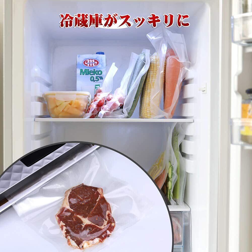 【使い勝手】外装袋は簡単に開閉できるチャック付ポリ袋、安心・衛生的に管理できます。空気を抜きとることによって食品の酸化、腐敗を抑制します。手触りがよく、内容物を潰さずに綺麗に真空パックすることができます。真空で鮮度密封、鮮度長持ち、冷蔵・冷凍庫をスッキリ収納できます。ご家庭では、たくさん作って冷凍保存・キャンプの食材・趣味の魚釣りでご近所のお裾分けに使い便利です。また、料理店・レストラン・ホテルの厨房・精肉店・寿司店・鮮魚店・冷凍食品製造業者・和洋菓子店など、様々な場所に適用可能です。