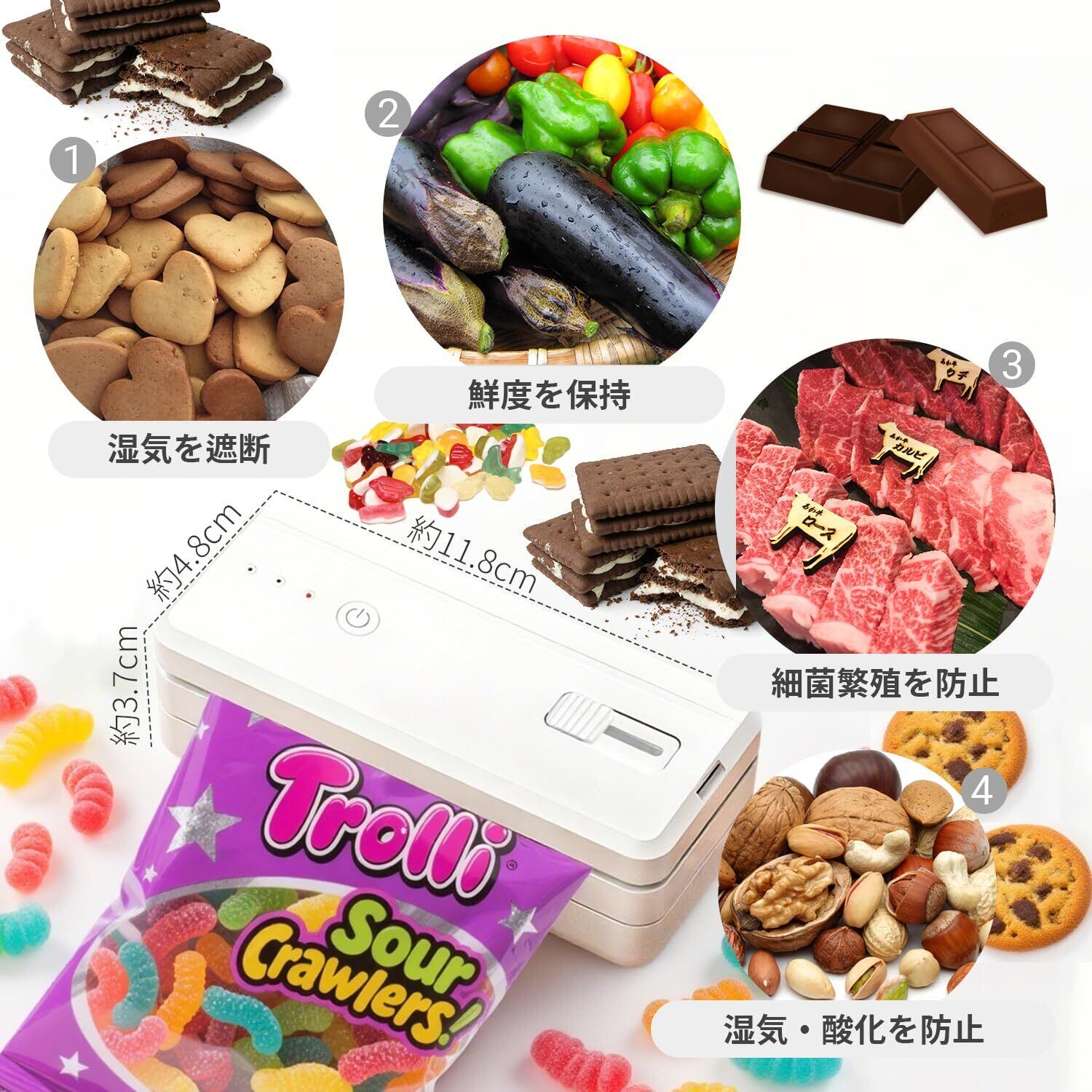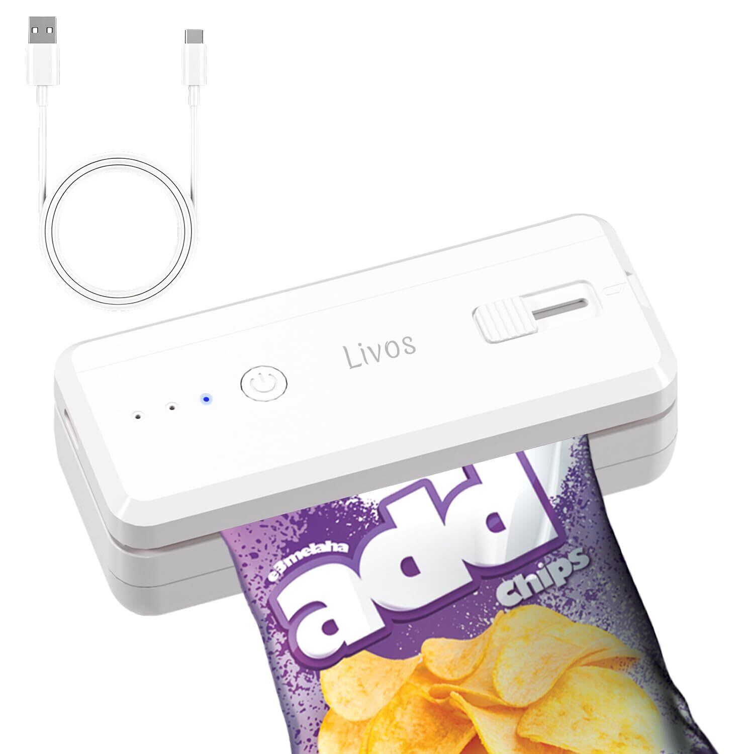 Livos シーラーハンディ 家庭用 ヒートシーラー フードシーラー 予熱不要 操作簡単 1300mAh Type-C充電式 10cmシール幅 背面マグネット 内蔵マグネット閉合 カッター付き 軽量 携帯便利 食材新鮮保存密封 お菓子 3段階の加熱レベル付き 日本語取扱説明書