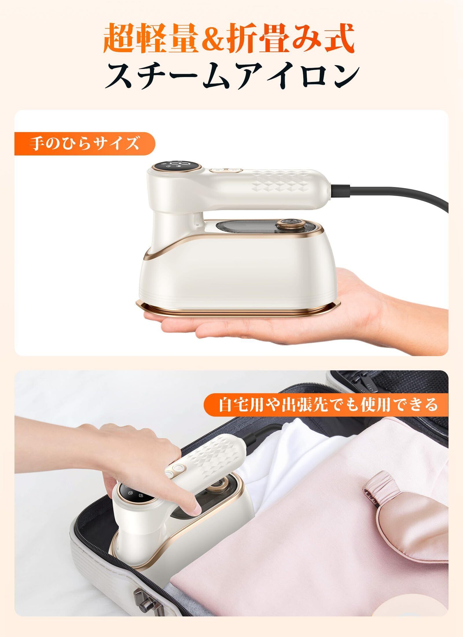 【2025新バージョン】eue アイロン スチームアイロン【3段階スチーム量調節&LEDディスプレイ】衣類スチーマー シワ伸ばし 折畳み式 10秒立ち上がり 150℃高温 除菌 脱臭 ハンドル180°回転 携帯アイロン 軽量 小型 ハンディ 家庭 出張(ホワイト)