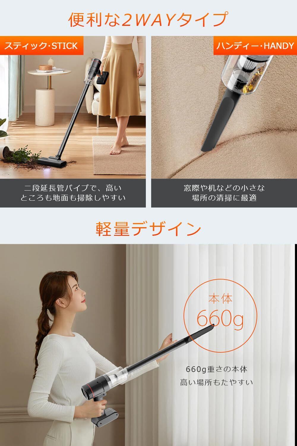 【2025進級版&15000pa 超強力吸引&超軽量0.6kg】 掃除機 コードレス Type-C充電式 35分間連続稼働 コードレス掃除機 2way スティッククリーナー ハンディクリーナー 5種類ノズル 延長パイプ ライト付き 多重濾過 HEPAフィルター 静音設計 一人暮らし&お年寄り カーペット/カーテン/ソファ/車に適用
