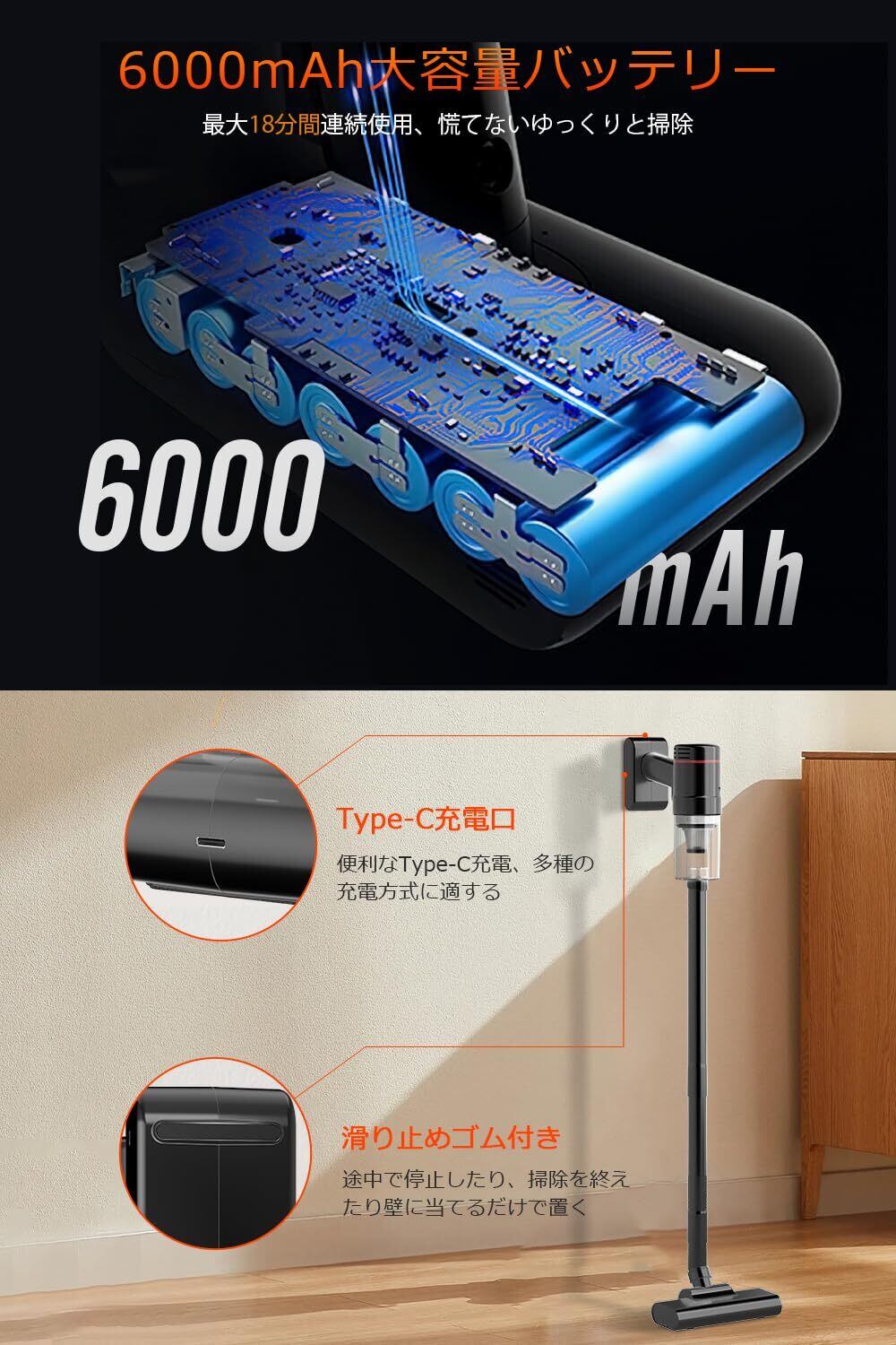 【長時間使用可能なバッテリーと静音設計】6000mAhの大容量バッテリーを搭載しており、最大35分間の連続使用が可能です。充電時間を気にせずに、一度の充電で家全体をしっかりと掃除できます。さらに、低騒音設計により、早朝や深夜の掃除でも周囲に迷惑をかけることがありません。静かでパワフルなこの掃除機は、家族や隣人を気にせず快適に使用できます。日常の騒音ストレスを軽減し、静かな環境での使用が求められる方にも最適です。多重フィルターが微細なホコリやアレルゲンをしっかりキャッチし、清潔な空気を排出します。