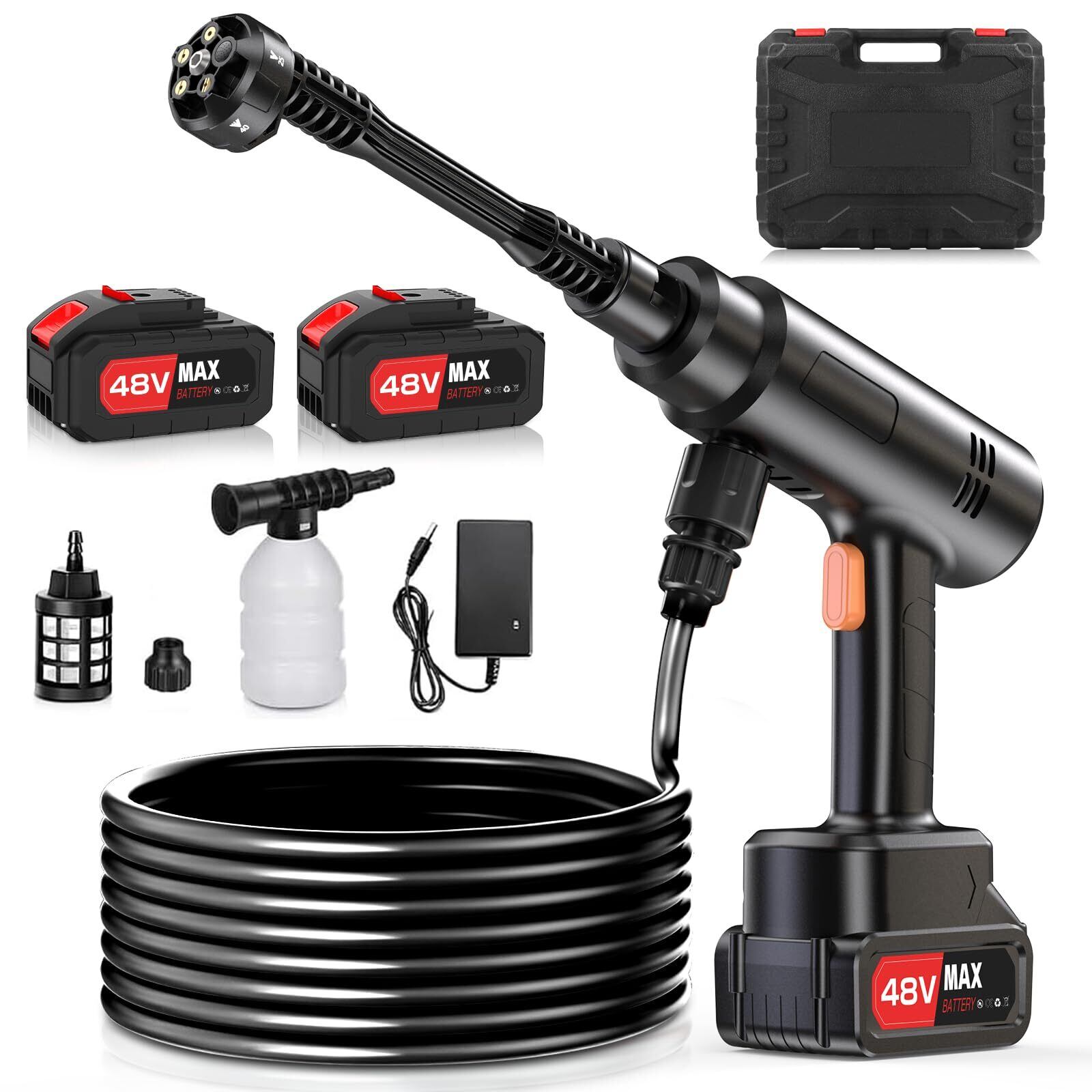 lapex高圧洗浄機 コードレス 充電式 高圧洗浄機 20000mAh バッテリー2個付き 8MPa マキタ互換バッテリー 6in1多機能ノズル 噴射距離10M 高圧洗車機 5mホース 軽量 ポータブル 家庭用洗車機 洗車 駐車場 庭 外壁 階段 黄砂 ベランダ 窓 網戸 ガラス 玄関 浴室 墓石掃除 フォームガン 収納ケース付き 日本語取扱説明書