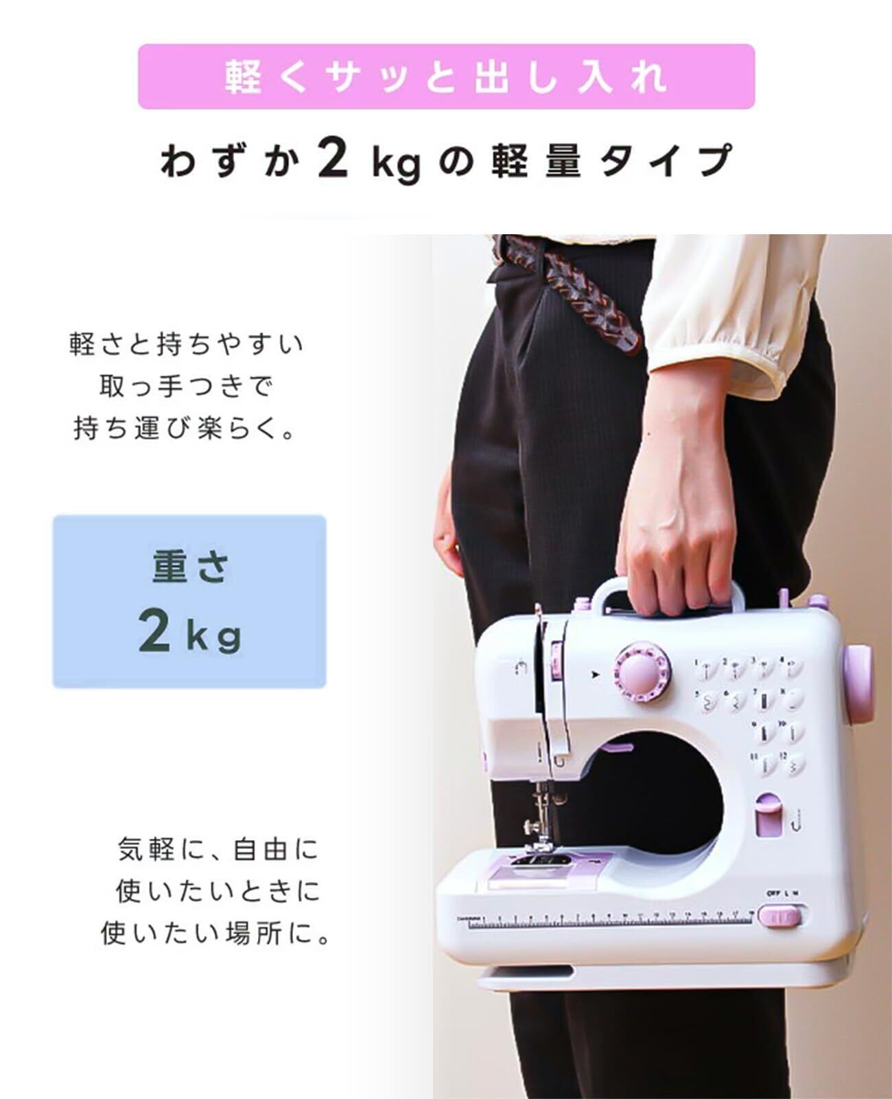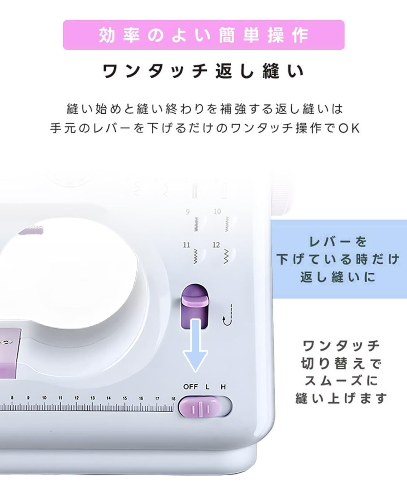 ミシン 初心者向け 電動ミシン 12種類縫い目 家庭用電動ミシン 返し縫い機能 2way給電 スピード調整可 42PCS裁縫用アクセサリー 日本語説明書付 ホワイト・パープル