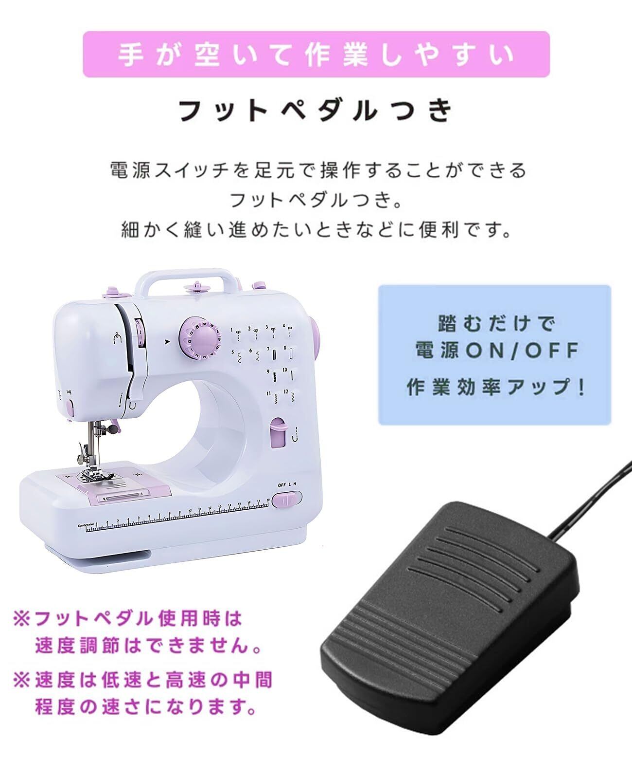 【2種類のミシン操作】:①ミシンにはスイッチボタンがあり、手でボタンを押してミシンの動作を操作でき、ミシンの速度を制御することができます。②フットペダルの付属品があります。、ミシンに接続でき、フットペダルを踏むことでミシンの速度を制御することができできます。