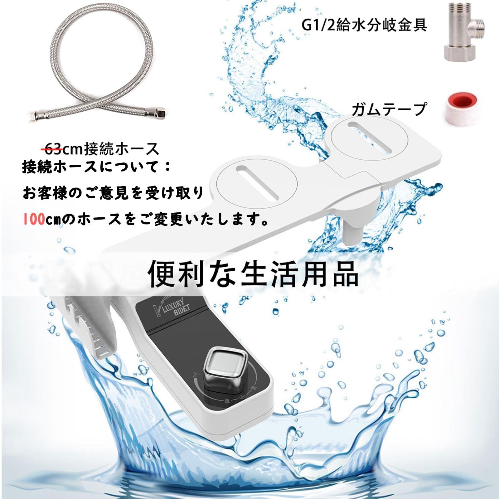 【最新の型】このスリム便座洗浄ユニットは新しいデザインを採用し、電源不要、薄型スリムので、互換性高くて、多くの便座にも対応。セット内容:スリム便座洗浄ユニット本体、100cm接続ホース、G1/2給水分岐金具、ガムテープ。取り付けより簡単です。