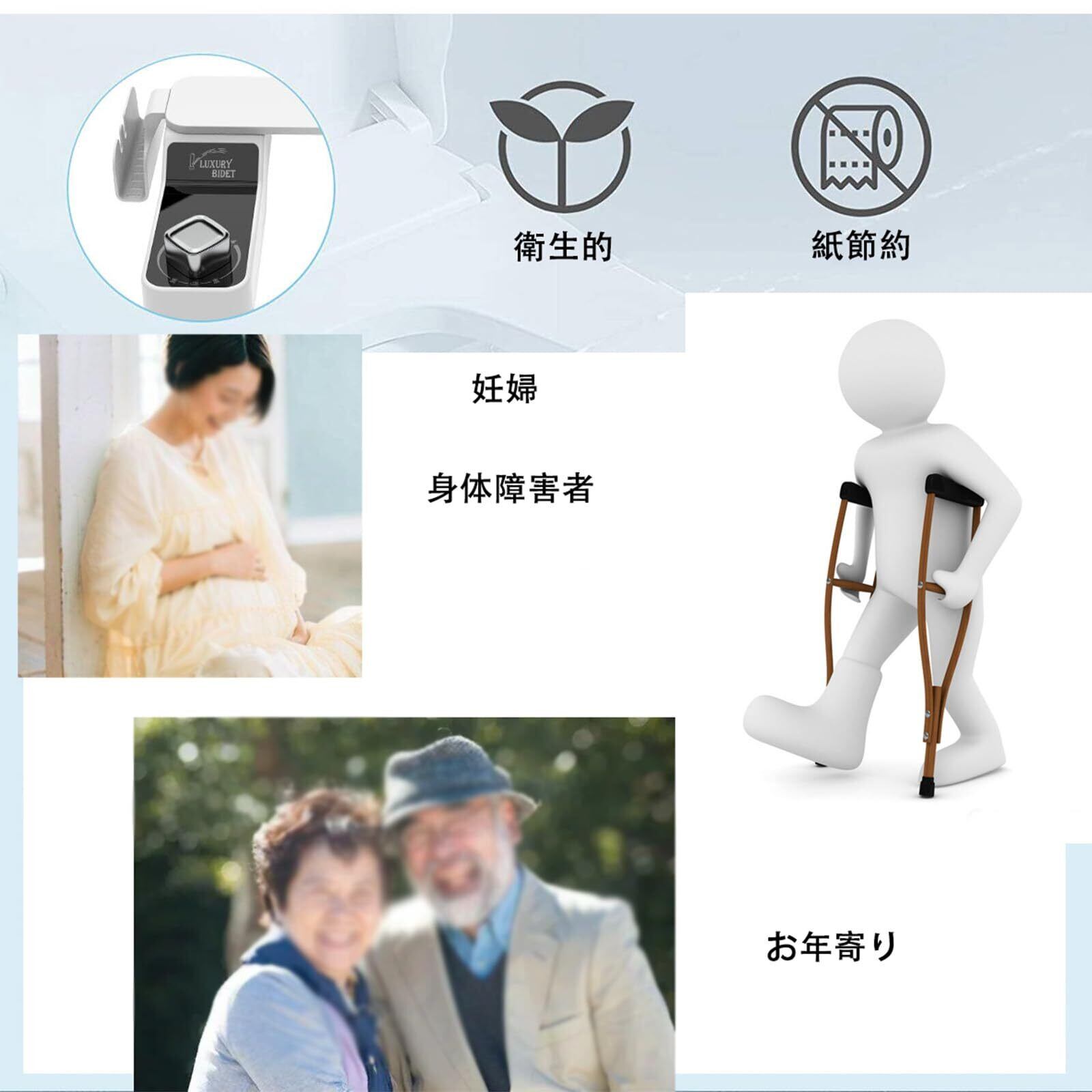 【使用シーン】通常、女性、クリーニング3つモードがあるので、男女兼用です。妊婦、身体障害者、またはお年寄りには簡単に洗浄でき、それに、ビデ、自体の清潔やすいです。家族へのプレゼントにも最適です。