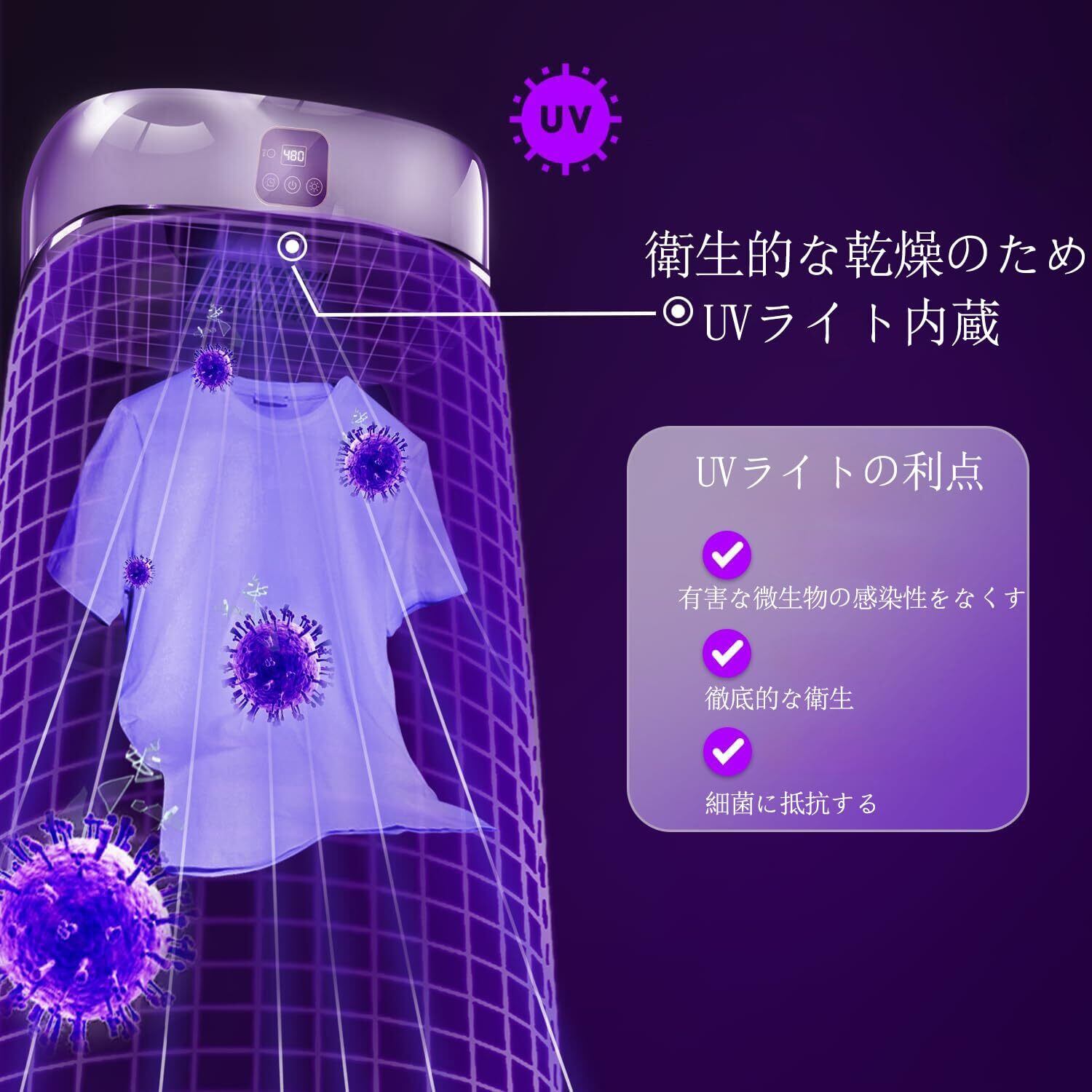 【内蔵LED UVディープクリーニング】:最先端のLED UVテクノロジーを組み込んで、乾燥時に衣類を徹底的にクリーニングし、比類のない清潔さと純度をします。【重量】約1.3kg【耐荷重】約10kg【梱包サイズ】幅32.6×奥行25×高さ13.7cm(約1.6kg)
