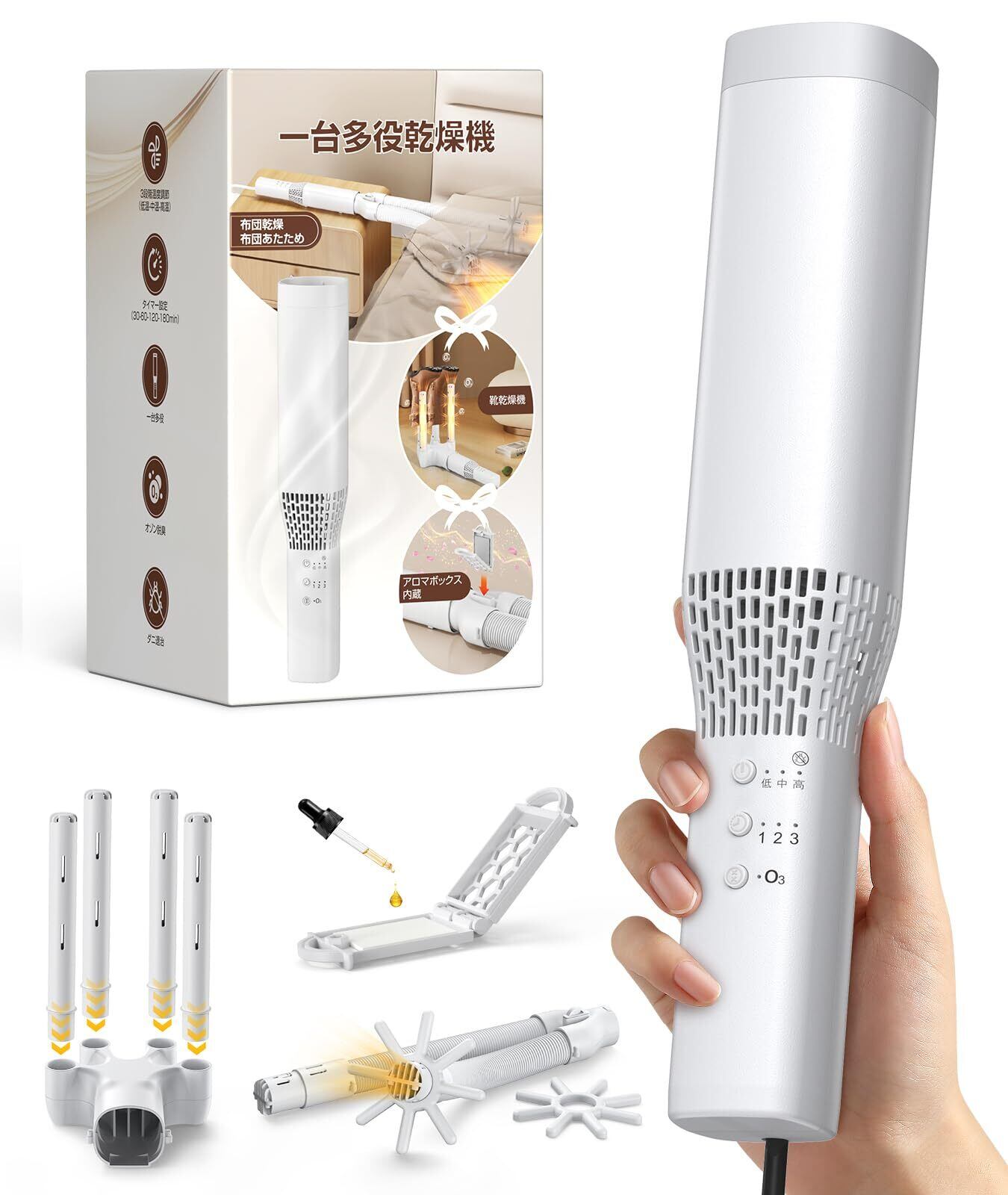【特価セール】布団乾燥機 ダニ退治 【業界初・オゾン脱臭】 ふとん乾燥機 コンパクト パワフル「1台多役」布団あたため 衣類乾燥 靴乾燥 布団かんそう 3段階温度・30-180分タイマー設定 軽量 収納便利 省エネ設計 アロマ対応 湿気対策 梅雨対策 ニオイ対策