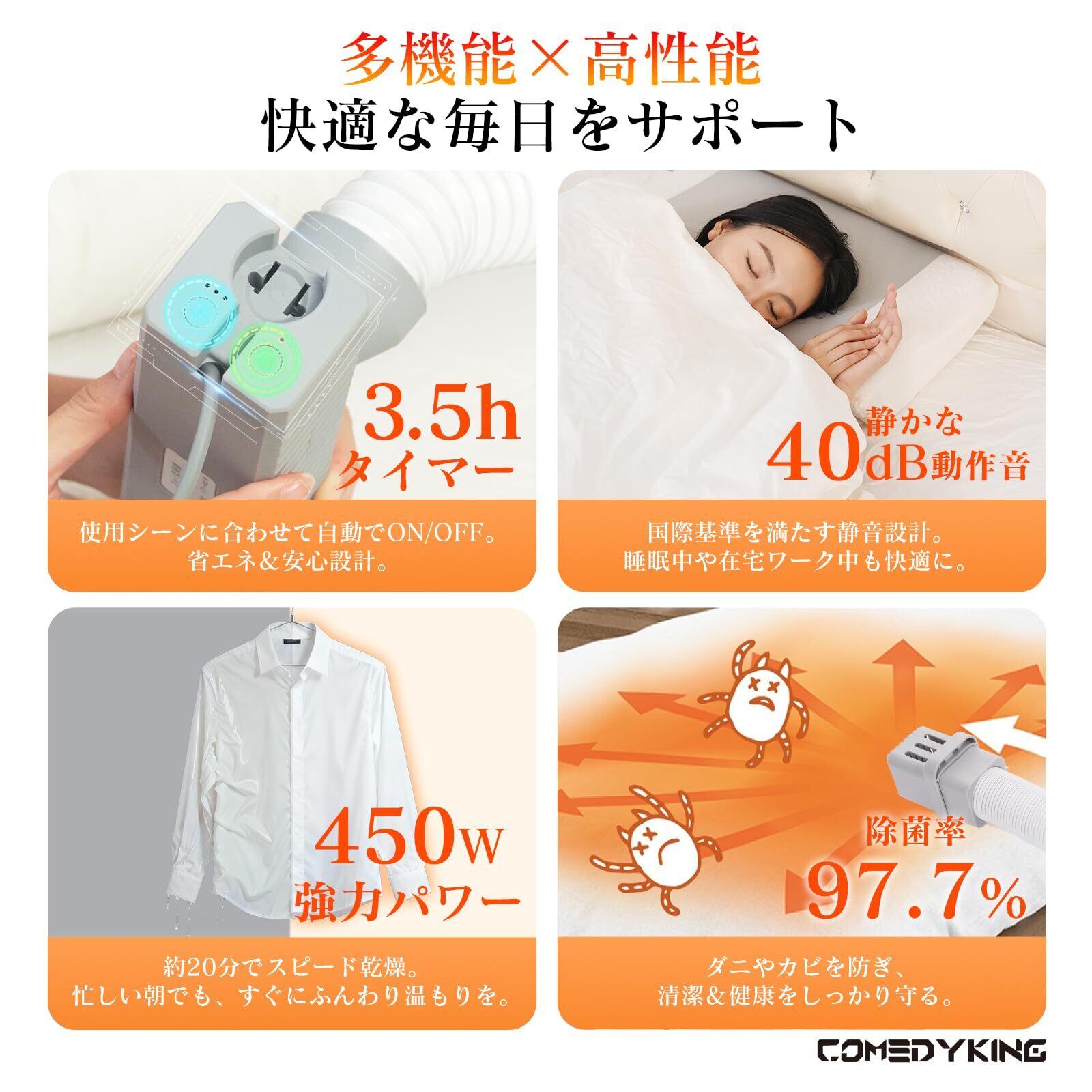 【COMEDYKING】2025年冬新登場【最高90℃ 強力450W送風】布団乾燥機 ミニ多機能乾燥機 衣類乾燥機 靴乾燥機 ふとん乾燥機 ダニ退治 衣類・布団・靴 乾燥機 小型 軽量 コンパクト設計 布団掃除機 タイマー機能付き 節電構造【梅雨や冬の冷え対策に大活躍】除菌・消臭・ダニ・花粉対策 最大103cm伸縮ホース 旅行 出張 一人暮らし 冬の必需品 ギフト プレゼント