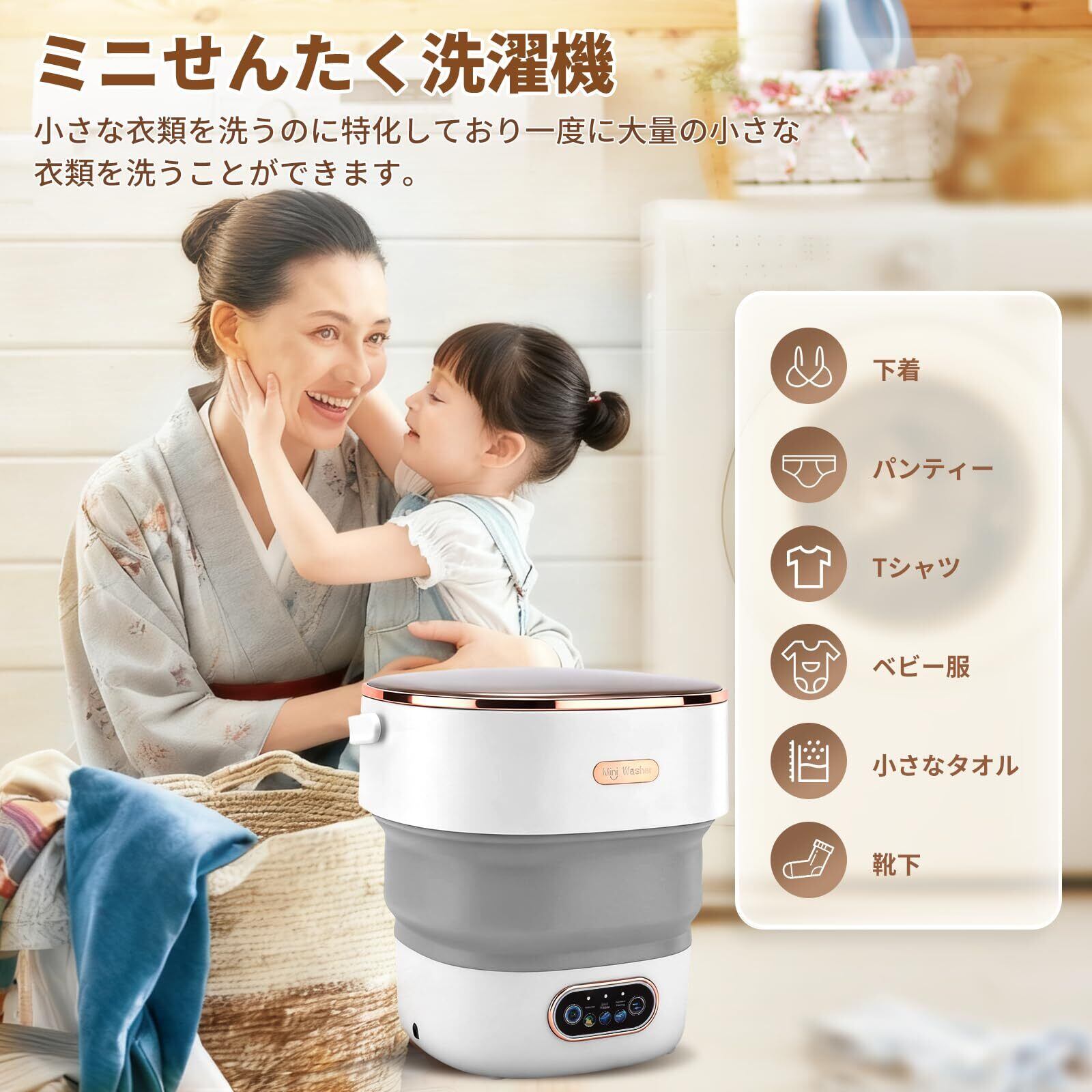 【 清潔を守るブルーライト除菌とTPE素材】 この小さい洗濯機は、TPEと食品級シリコン素材を採用し、デリケートな下着やベビー服の安全と衛生をしっかりサポートします。やわらかいTPE素材は汚れが落としやすく、お手入れも簡単。洗浄中は正回転と逆回転のダブルアクションで手洗いのようにやさしく洗い、ブルーライト除菌システムが99%の殺菌率で細菌や微生物を徹底的に除去。日常の分け洗いをもっと清潔で安心にします。