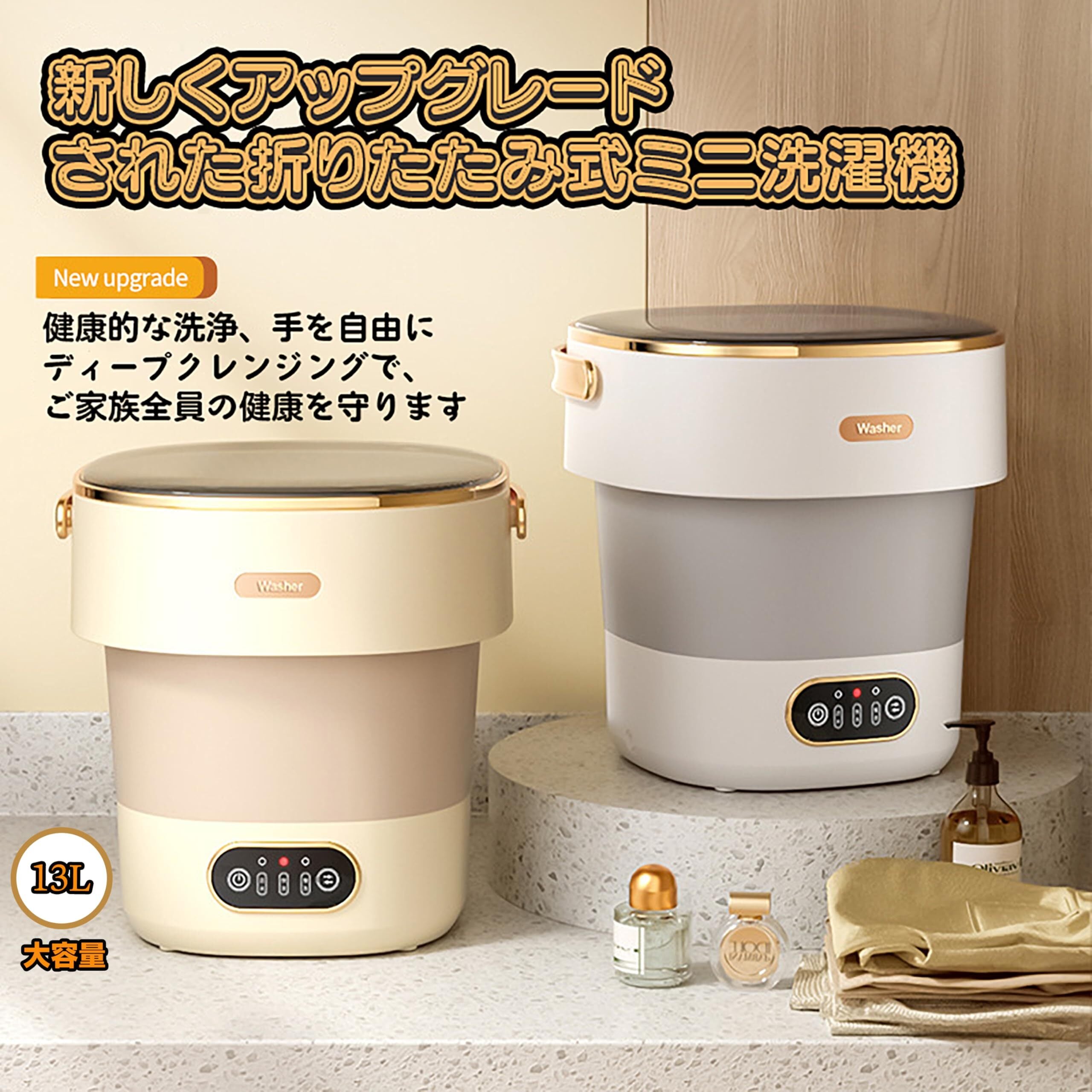 13リットルの大容量で複数回の洗濯が可能:最大13リットルの容量で、ベビー下着やロンパース約6枚、大人用下着やTシャツを複数枚洗えます。頻繁な手洗いの手間とはおさらばです。