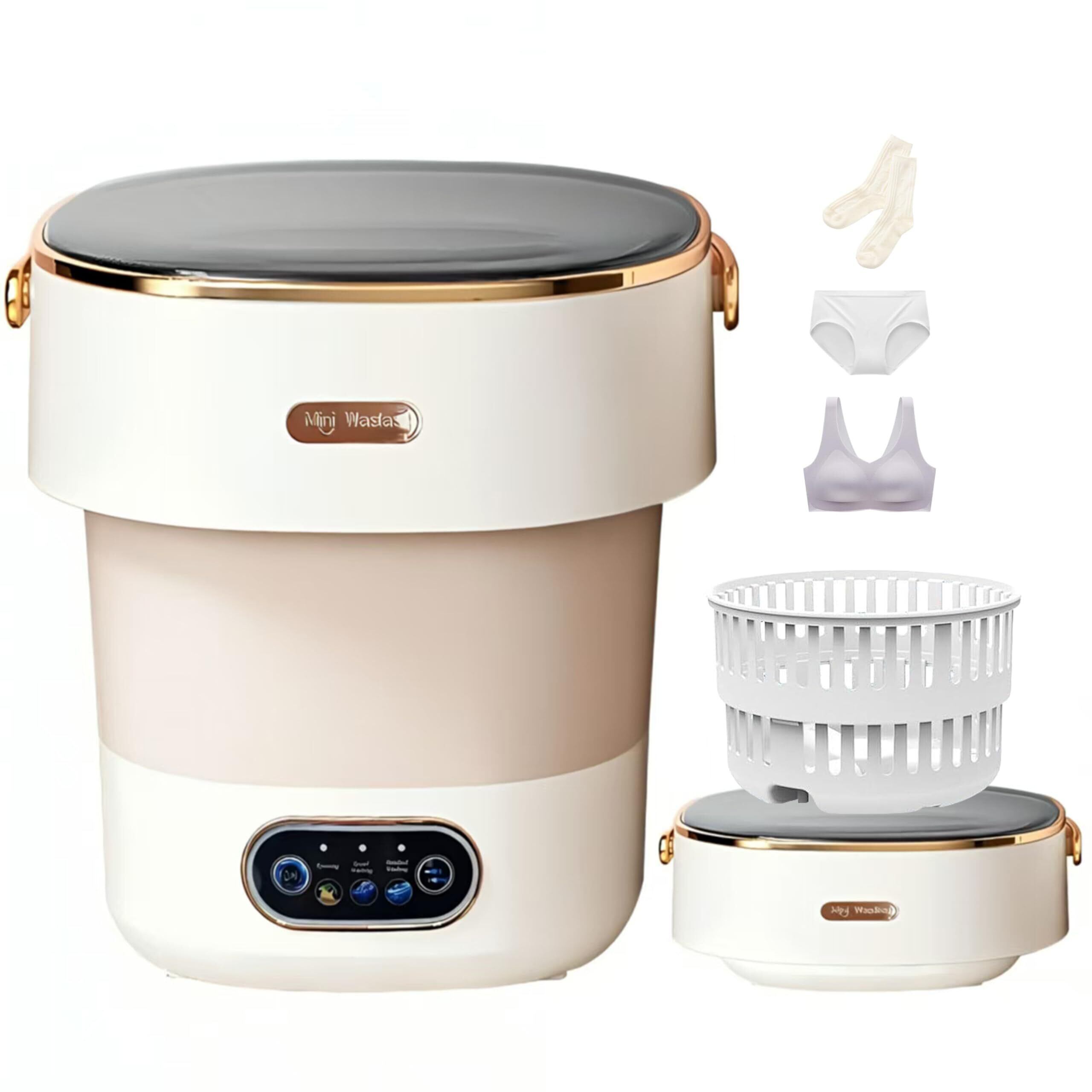 小型洗濯機 13Lの大容量 折りたたみ ミニ洗濯機 下着やベビー服の除菌に最適です 3分脱水 5/10分洗浄 脱水機能付き 脱水かご付き 小型脱水機 旅行や一人暮らしにも最適です 軽量で持ち運びも楽々 オフホワイト 33×32×34CM