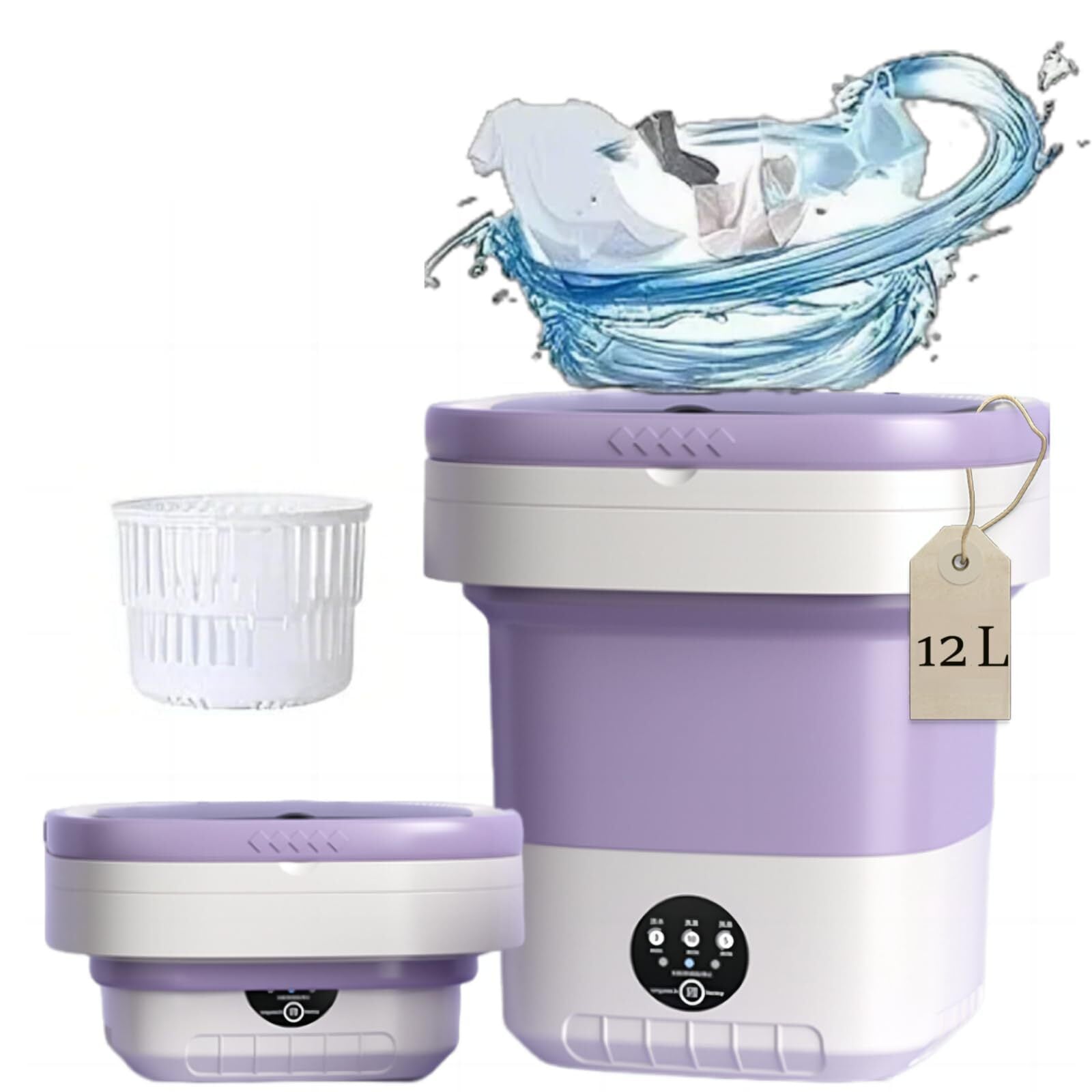 【12 Lポータブル洗濯機】小さな衣類を個別に洗濯するために設計されています。この小型折りたたみ式洗濯機は、下着、靴下、赤ちゃんの服、タオルを徹底的に洗浄し、衣類の衛生的で新鮮なものを確保することができます。