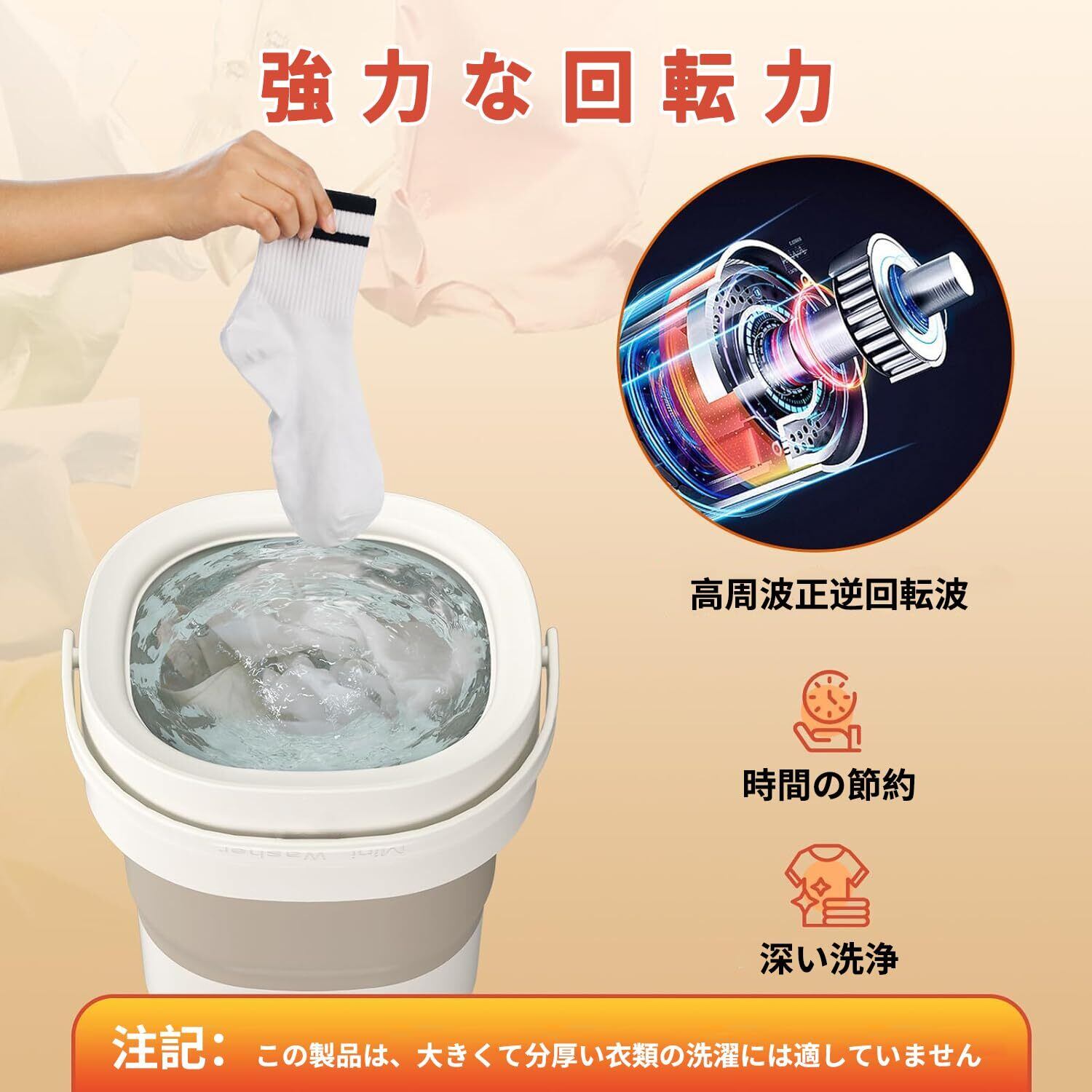【アップグレード材料とモーター】TPE食品級シリカゲル材料を用いて製造し、個人物品、赤ちゃん衣類などの安全と衛生を確保する。低消費電力の静音モータを搭載した厚みのあるボディ、運転中の安定性を確保し、振動を取り除き、静かな洗濯体験をもたらした。