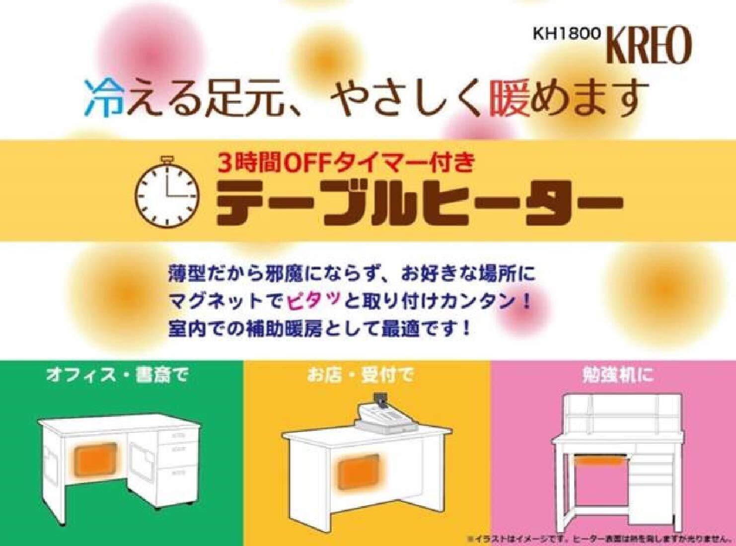 【特価商品】クレオ工業 テーブルヒーター 3時間タイマー付き 省エネ マグネット式 消し忘れ防止タイマー搭載 グレー