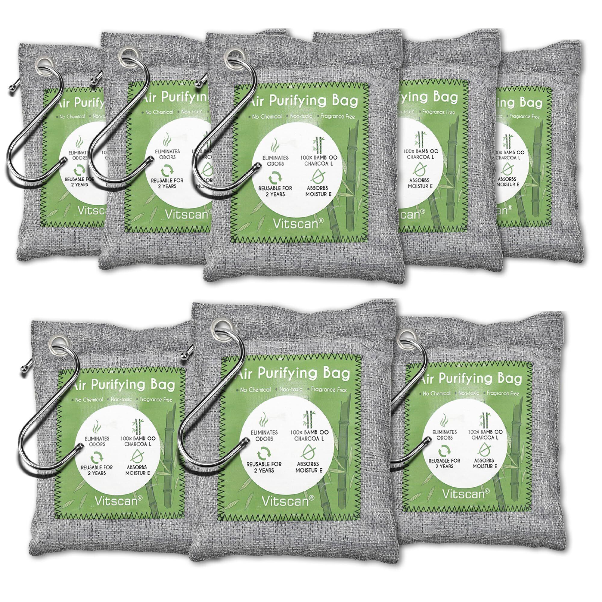 8パックの竹炭空気清浄バッグ、活性炭バッグ、吸臭剤、湿気吸収剤、天然カー用空気清浄剤、靴用消臭剤、家庭用、ペット用、クローゼット用、車用消臭剤