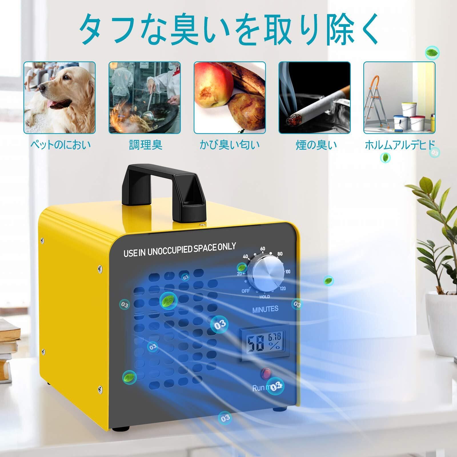 オゾン発生量【PSE認証済】10000mg/h 業務オゾン発生器 脱臭器 産業機エアクリーナ 家庭用空気清浄機 【日本仕様・電気用品安全法準拠】強力消臭 キッチン、家庭、オフィス、工場、農場、レストラン、車、玄関に適しています 日本語説明書付き イエロー