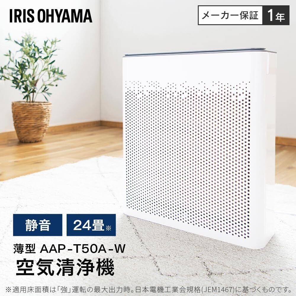 【数量限定】アイリスオーヤマ 空気清浄機 24畳 消臭 除菌 脱臭 ホコリ 花粉 集じん PM2.5 ペット 静音 省エネ 軽量 タバコ アレルギー対策 コンパクト 切りタイマー付 節電 AAP-T50A-W ホワイト