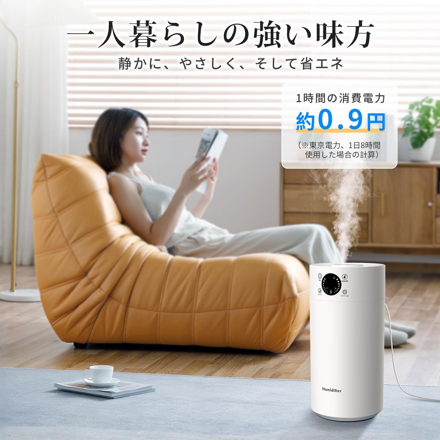 【 25dB静音&省エネ設計で快眠と節約を両立】運転音は図書館よりも静かなわずか25dB。快眠を妨げない静けさで、音に敏感な方も安眠できます。寝室でのご使用に最適です。また、わずか25Wの低消費電力(超音波式)設計により、長時間運転しても電気代を気にせず使え、日本の高騰する電気代を節約できます。
