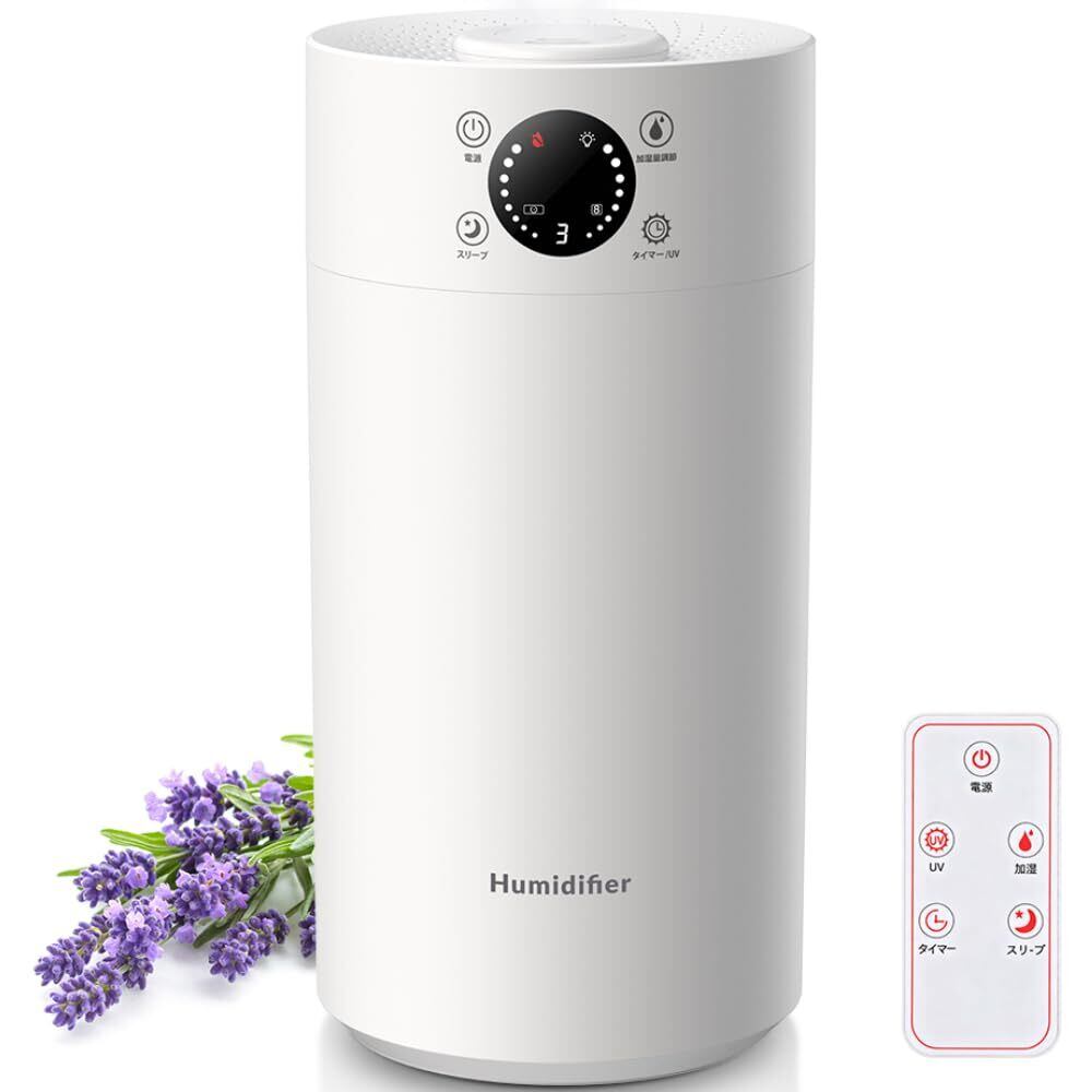 【 スマート&安全機能:リモコン操作で快適コントロール】ベッドやソファから動かず操作できるリモコン操作に対応。タッチパネルに加え、離れた場所からでも快適に加湿レベルを調整できます。水がなくなると自動で停止・警告する空焚き防止機能付きで、就寝中や外出時の不安を解消します。オフタイマーや3段階調整など、お好みに合わせてカスタマイズ可能です。