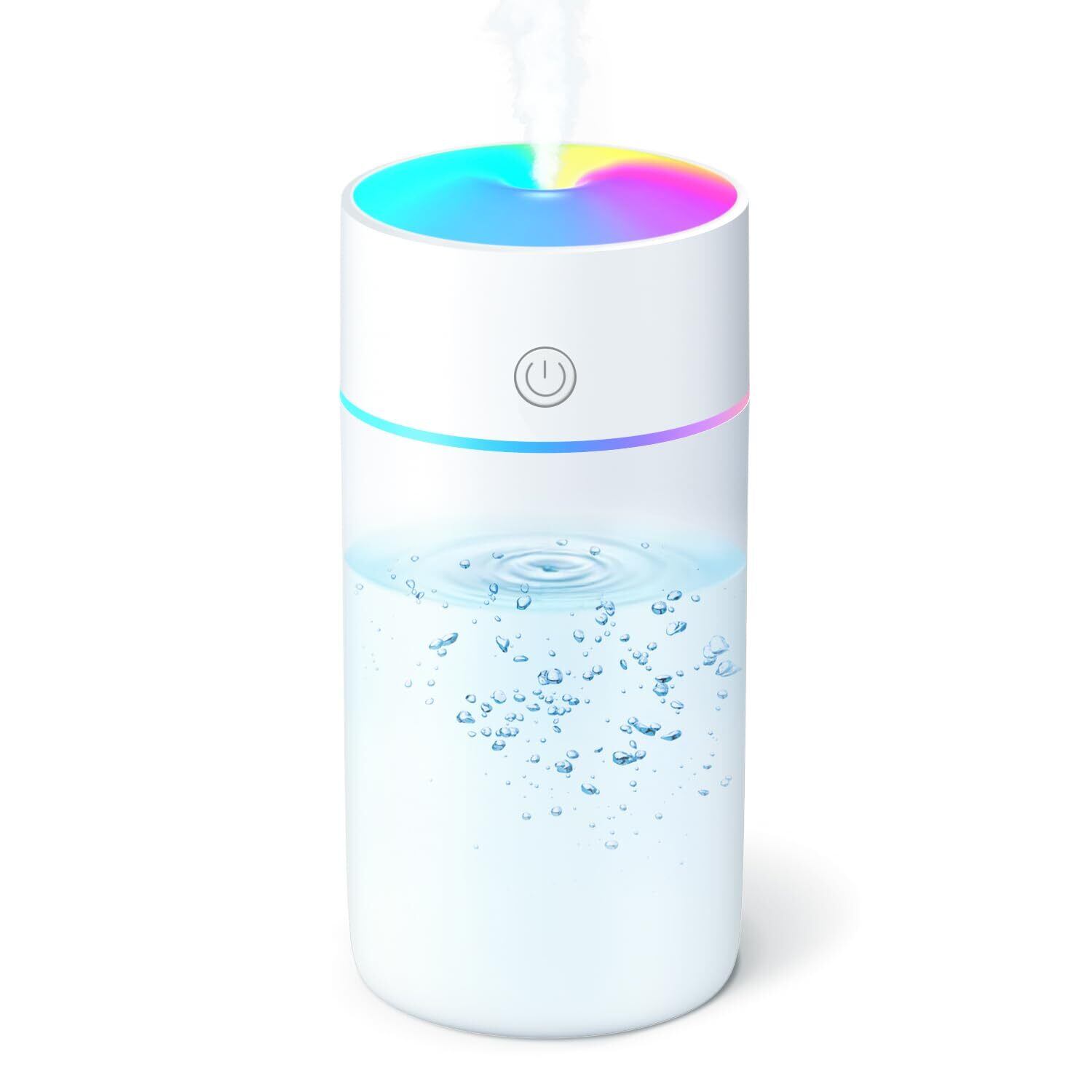 加湿器 小型 卓上 【TYPE-C給電式 & 2段階ミスト】 超音波式 車 ペットボトル アロマ対応 ミニ加湿器 大容量350ml 空焚き防止 車載 持ち運び USB コンパクト 小さい humidifier 静音 水漏れ防止 3種類LEDライト 自動停止機能 次亜塩素酸水対応 バッテリーなし 寝室 オフィス 乾燥対策 花粉対策 (ホワイト)