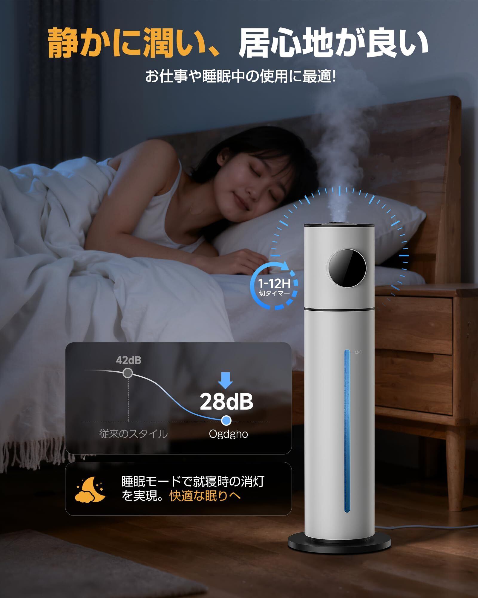 【Ogdghoのこだわり:上品スリムデザイン×安心品質】機能性もデザイン性も妥協したくない方へ。9Lの大容量をコンパクトな縦型ボディに収め、どんなインテリアにもすっきり融合。PSE認証取得・空焚き防止など安全機能も充実。タンクやフィルターは丸洗い可能で、清潔を保ちながら長くご愛用いただけます。ご自宅用にはもちろん、大切な方への贈り物にも喜ばれる、機能と美しさが調和した一台です。