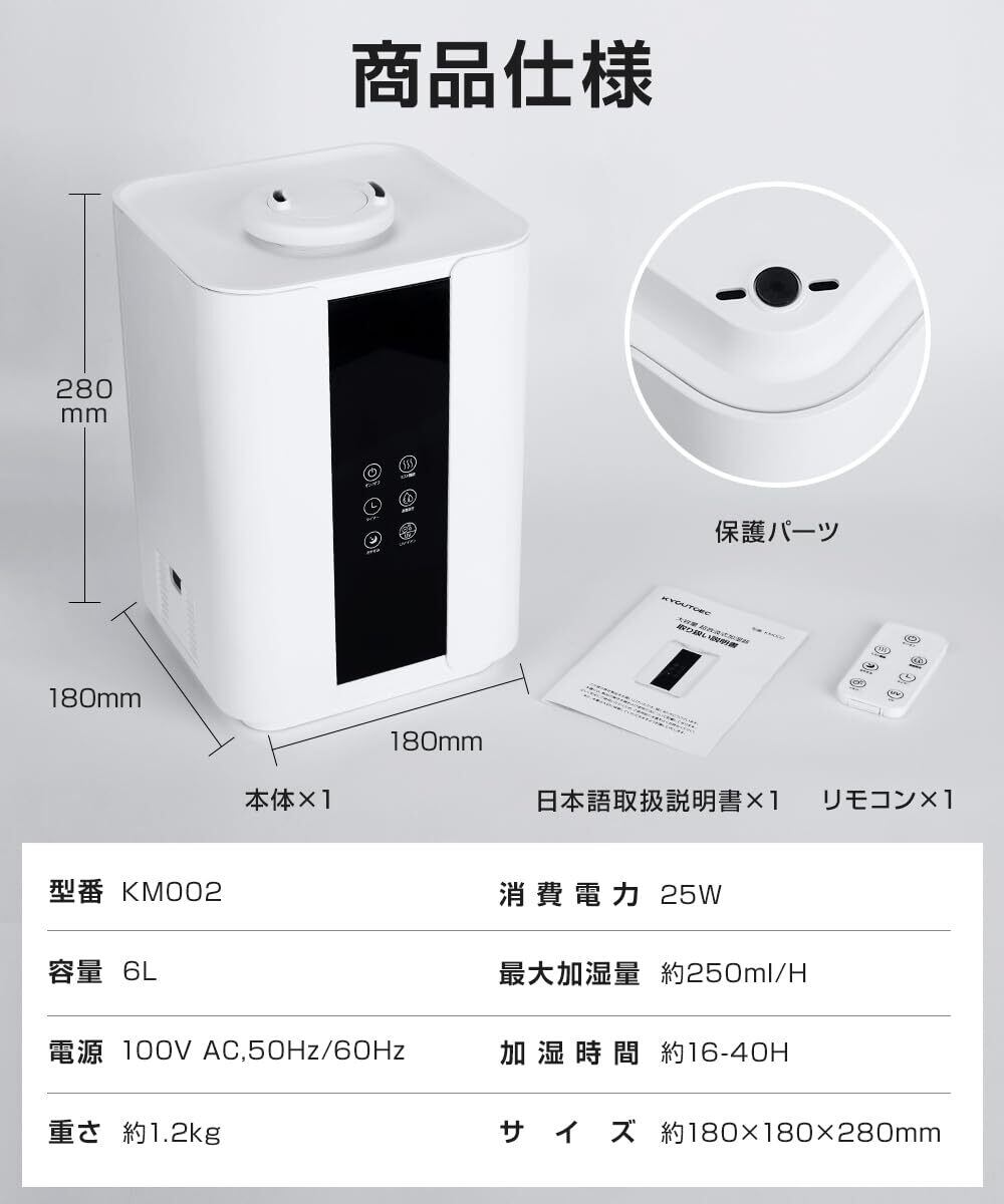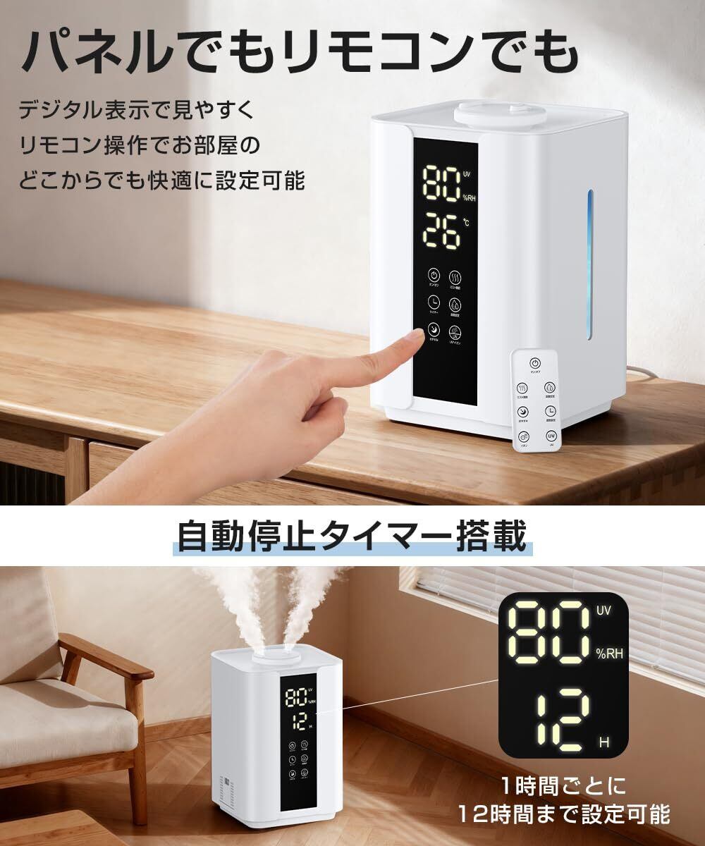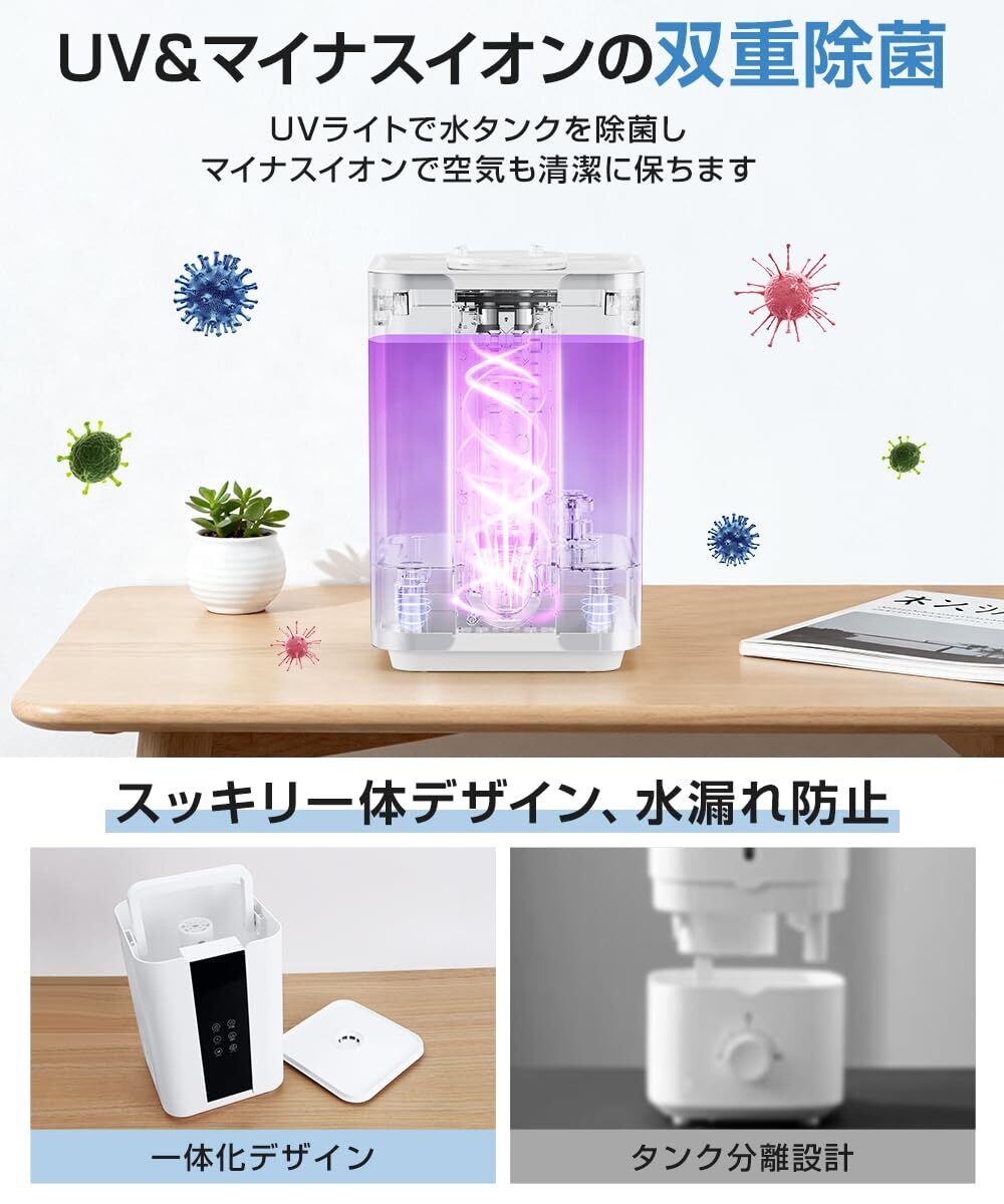 【UVライト除菌&安全設計】本 加湿器 除菌 は、タンク内の水を UVライト でしっかり 除菌 し、清潔で安心なミストを届けます。さらに自動オフ機能・空焚き防止機能付きで、水切れ時にも安心して使用可能な 加湿器 です。転倒しても停止する安心設計なので、小さなお子様やペットがいるご家庭でも安心です。静音設計により、就寝時の使用も快適で音を気にせず眠れる 大容量加湿器。