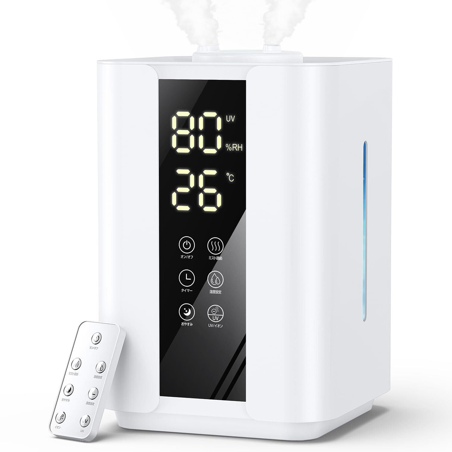 デジタルディスプレイ、3段階加湿量、UVライト除菌、マイナスイオン、軽量、アロマ対応、湿… 表示を増やす