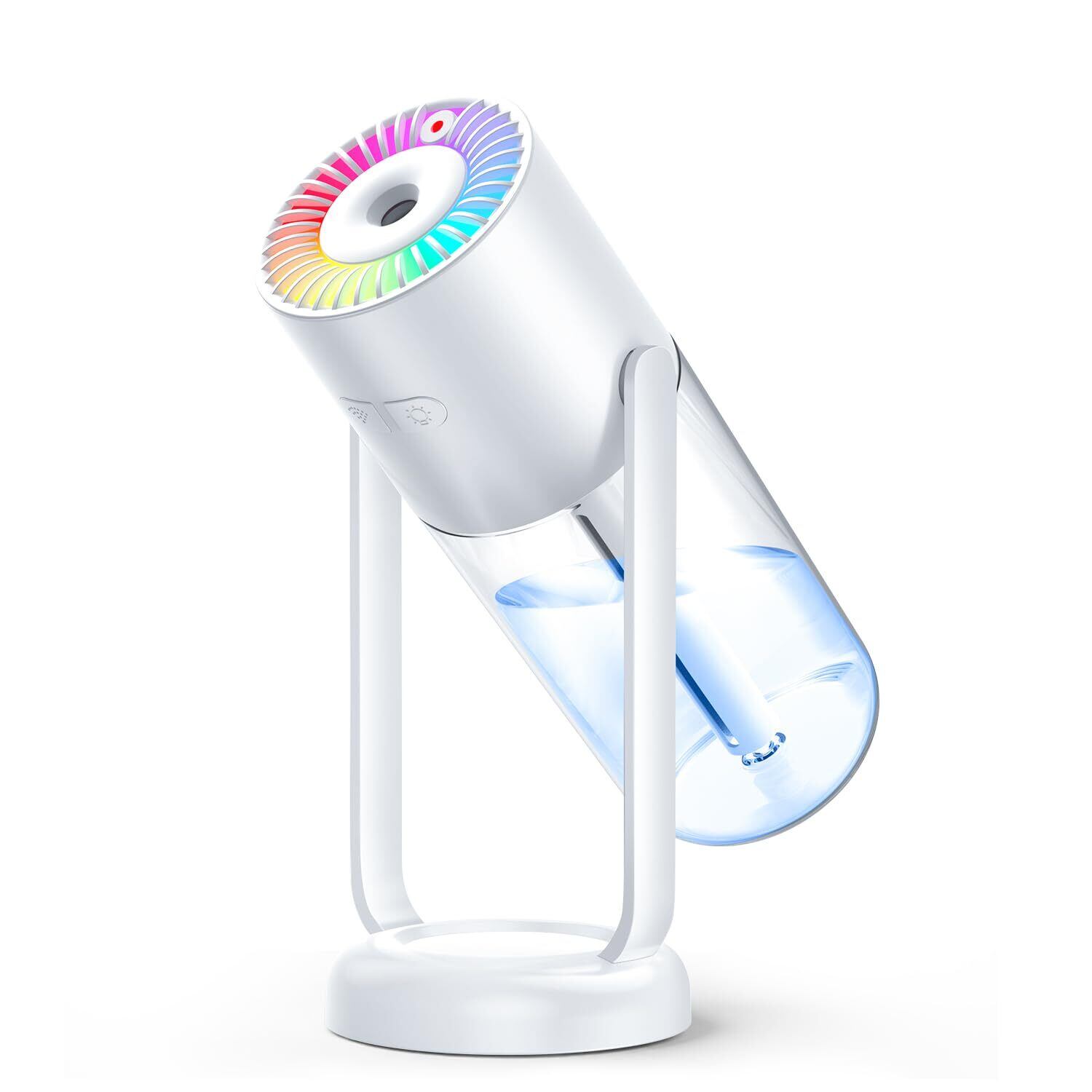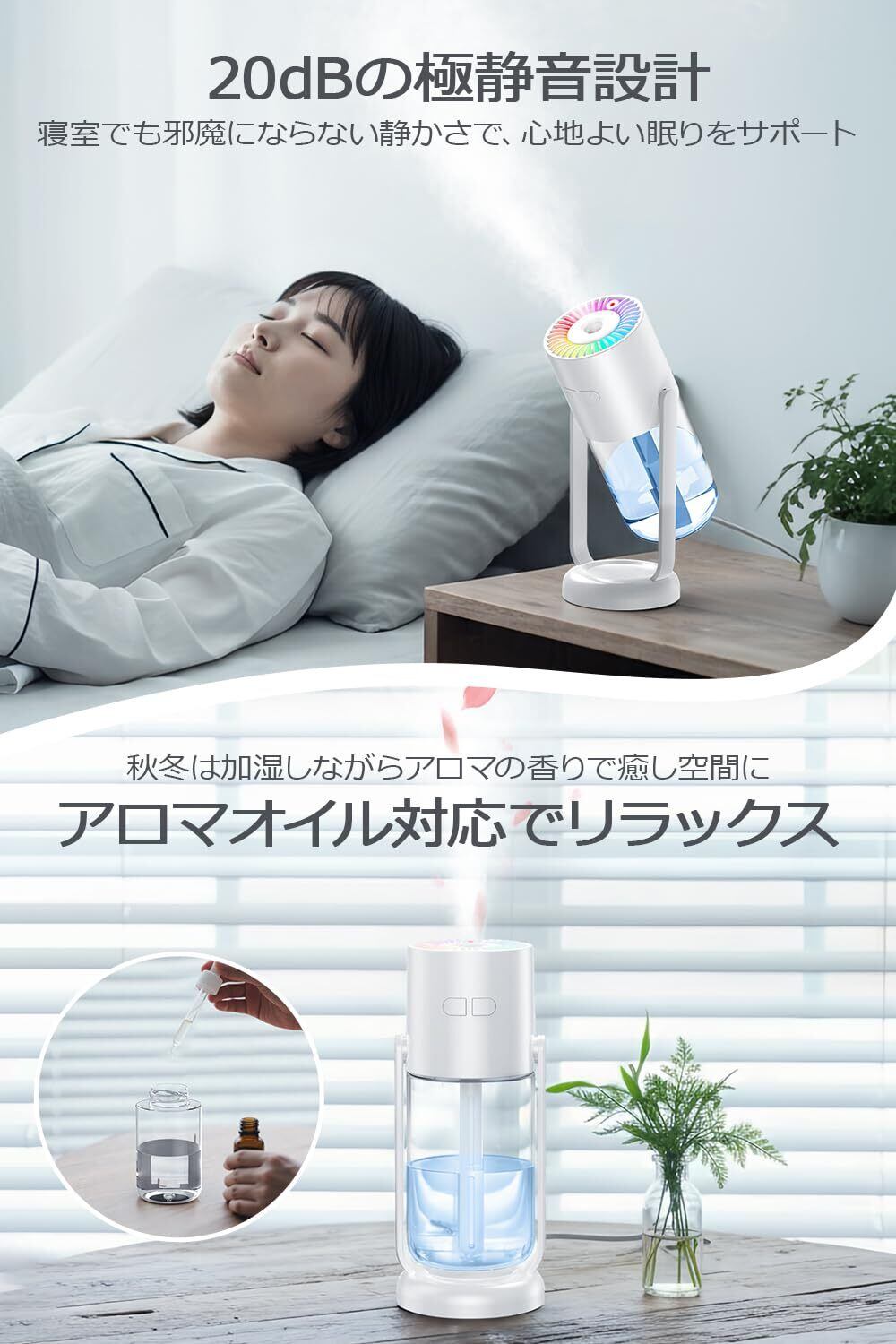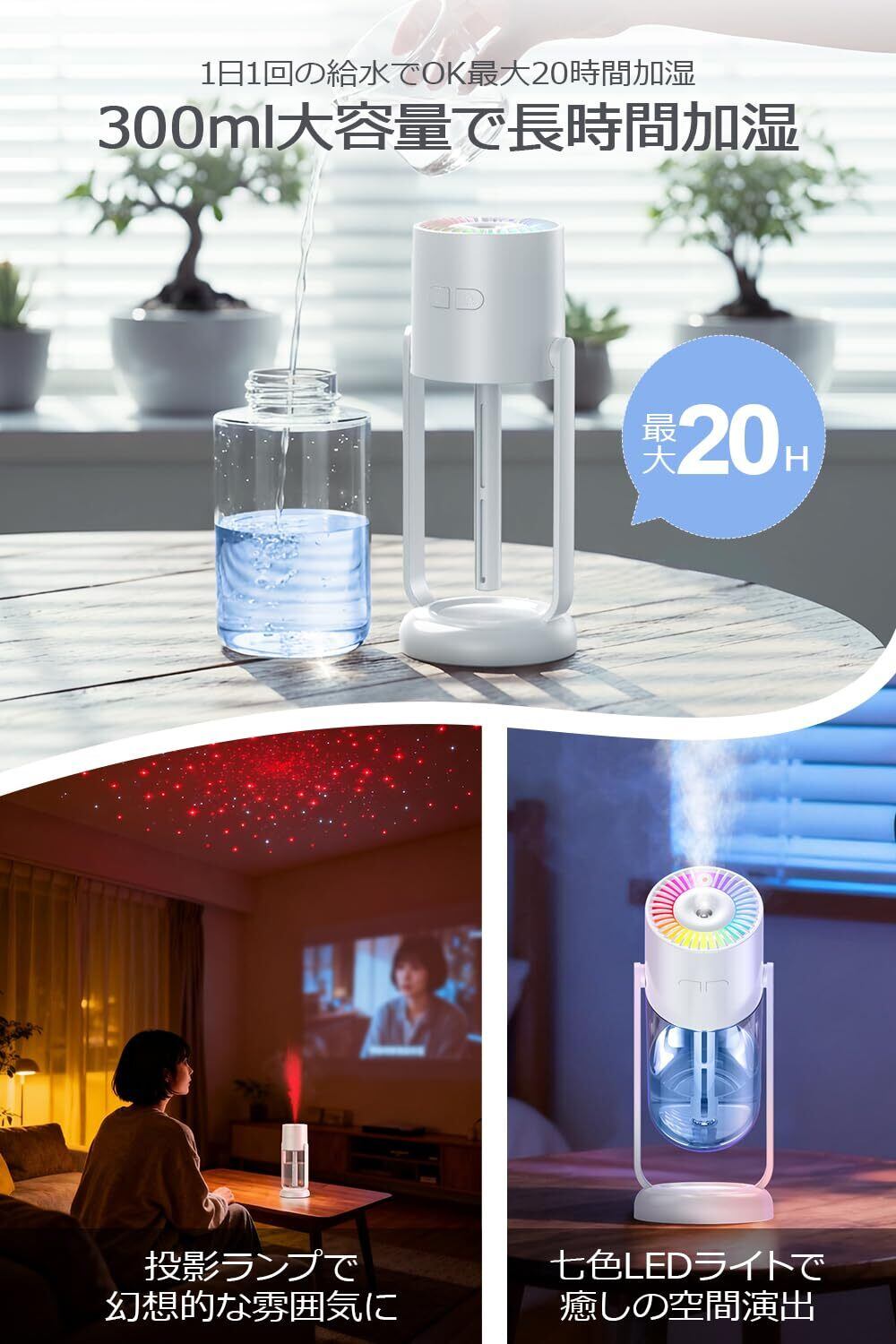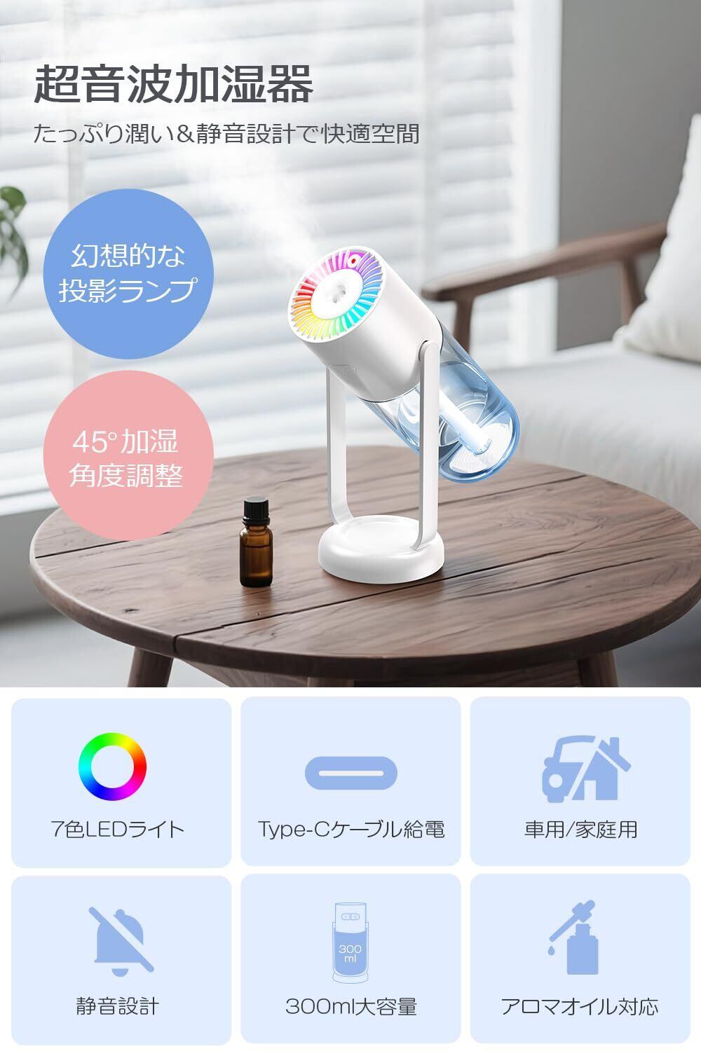 加湿器 小型 卓上 【2025新開発&投影ランプ&角度調整】 超音波式 卓上加湿器 除菌 20dB静音 300ML大容量 7色LEDライト 次亜塩素酸水対応 アロマ対応 2段階ミスト 持ち運び便利 自動停止機能 空焚き防止 水漏れ防止 省エネ Type-C 乾燥/花粉症対策 コンパクト 車用/部屋/寝室/オフィス用 クリスマス/誕生日/新年 プレゼント