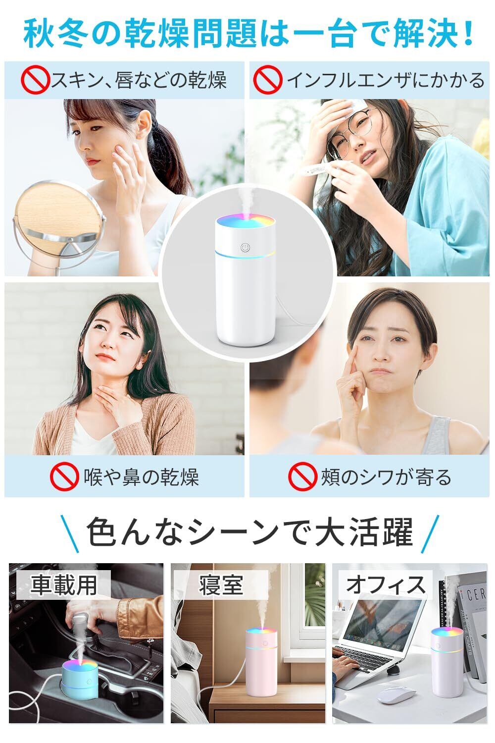 加湿器 小型 卓上 【USB給電式 & 2段階加湿量】 超音波式 車 ペットボトル アロマ対応 ミニ加湿器 大容量350ml 空焚き防止 車載 持ち運び USB コンパクト 小さい humidifier 静音 水漏れ防止 3種類LEDライト 次亜塩素酸水対応 バッテリーなし 寝室/オフィス 乾燥/花粉症対策 Geekin-Exdash (ホワイト)