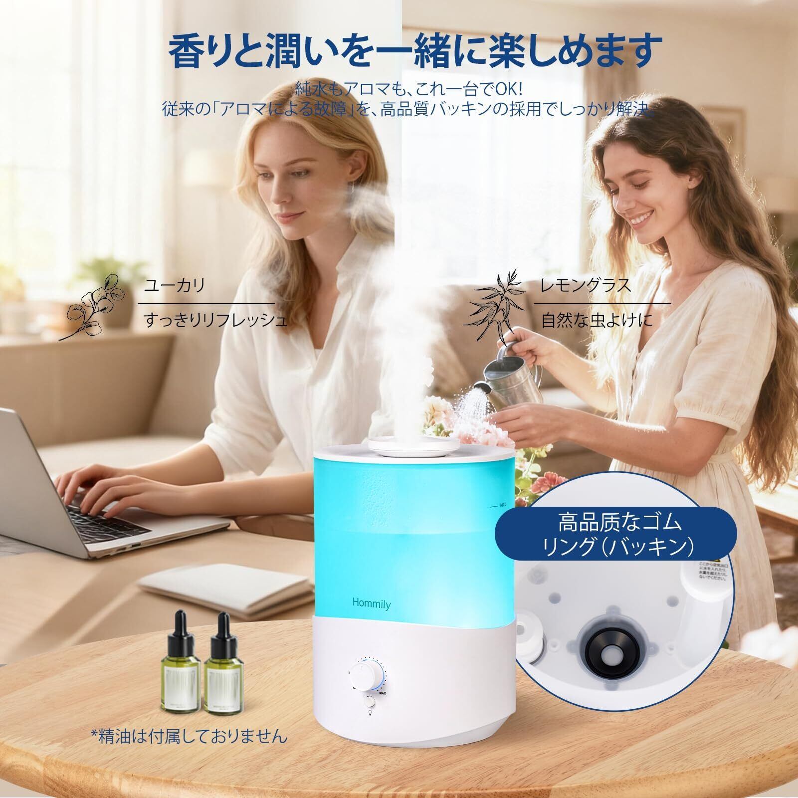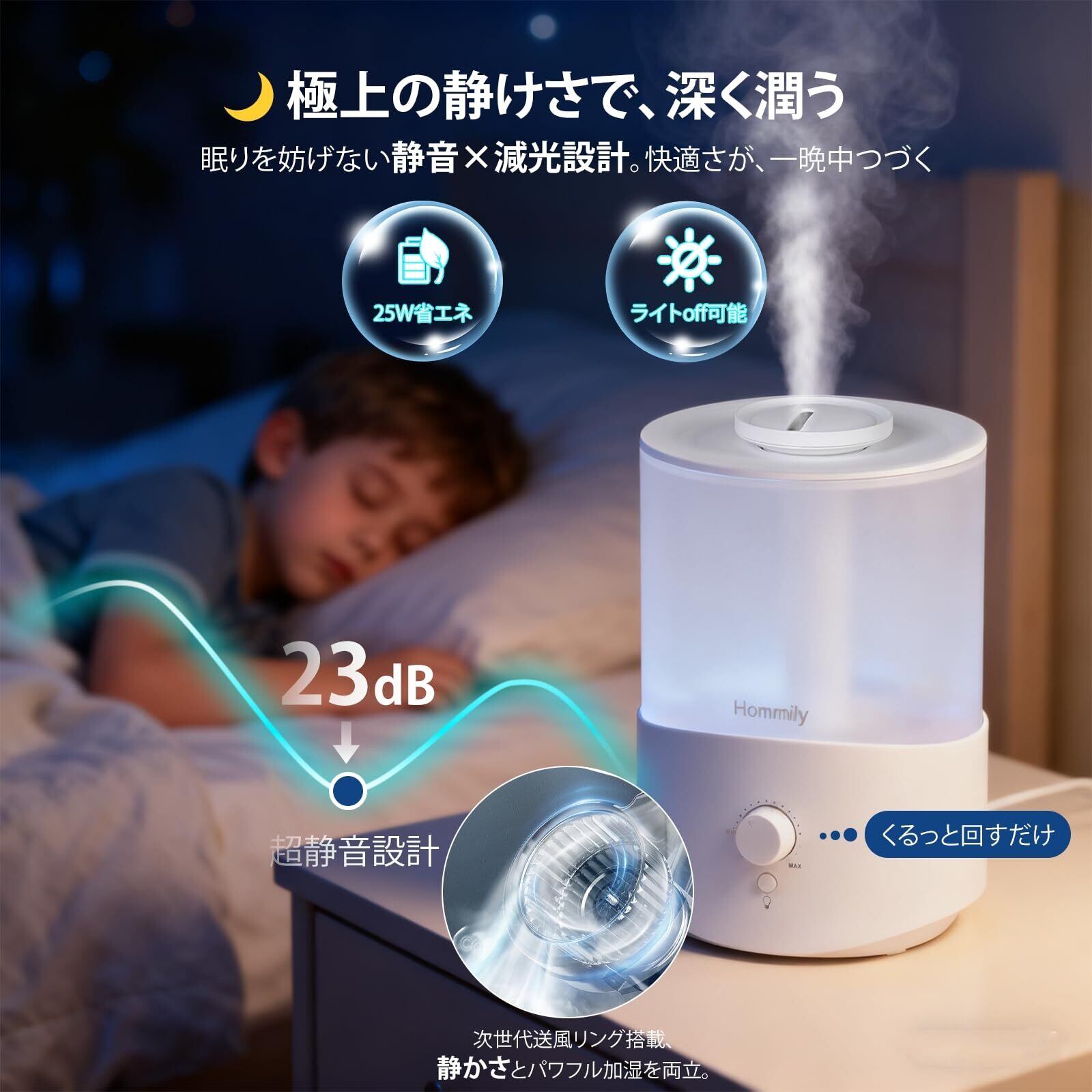 【2025年全方位進化!もう乾燥に悩まない】 給水の手間、騒音、雑菌、安全性…面倒ゼロで潤いだけをこの一台に。 3L大容量で35時間連続 | ダブル除菌 | 360°回転ミストノズル | 無段階ミスト調整 | PSE認証 | 23dB超静音 | 25W省エネ | 5μm超微細ミスト | アロマ/次亜塩素酸水/純水対応 3L大容量で35時間連続加湿:給水は2日1回で、朝まで潤い続く。 UV×マイナスイオンのダブル除菌:抗菌率99.9%で空気も水も清潔。 360°回転ミストノズル&無段階調整:欲しい場所に効率的に潤し、ダイヤルひとつで量を直感操作。 安心のPSE認証取得[モデル:10012E]:火災・感電リスクを大幅カット。 超静音23dB以下:極上の静けさで眠りも妨げず、潤い続く。 省エネ25W:1時間1円未満、長時間使用も経済的。 5μm超微細ミスト&上部給水式:わずか10分で湿度アップ、床も濡れにくく片手でラクラク給水。 アロマ/次亜塩素酸水/純水対応:香りも除菌も自由自在で、使い方の幅が広がる。