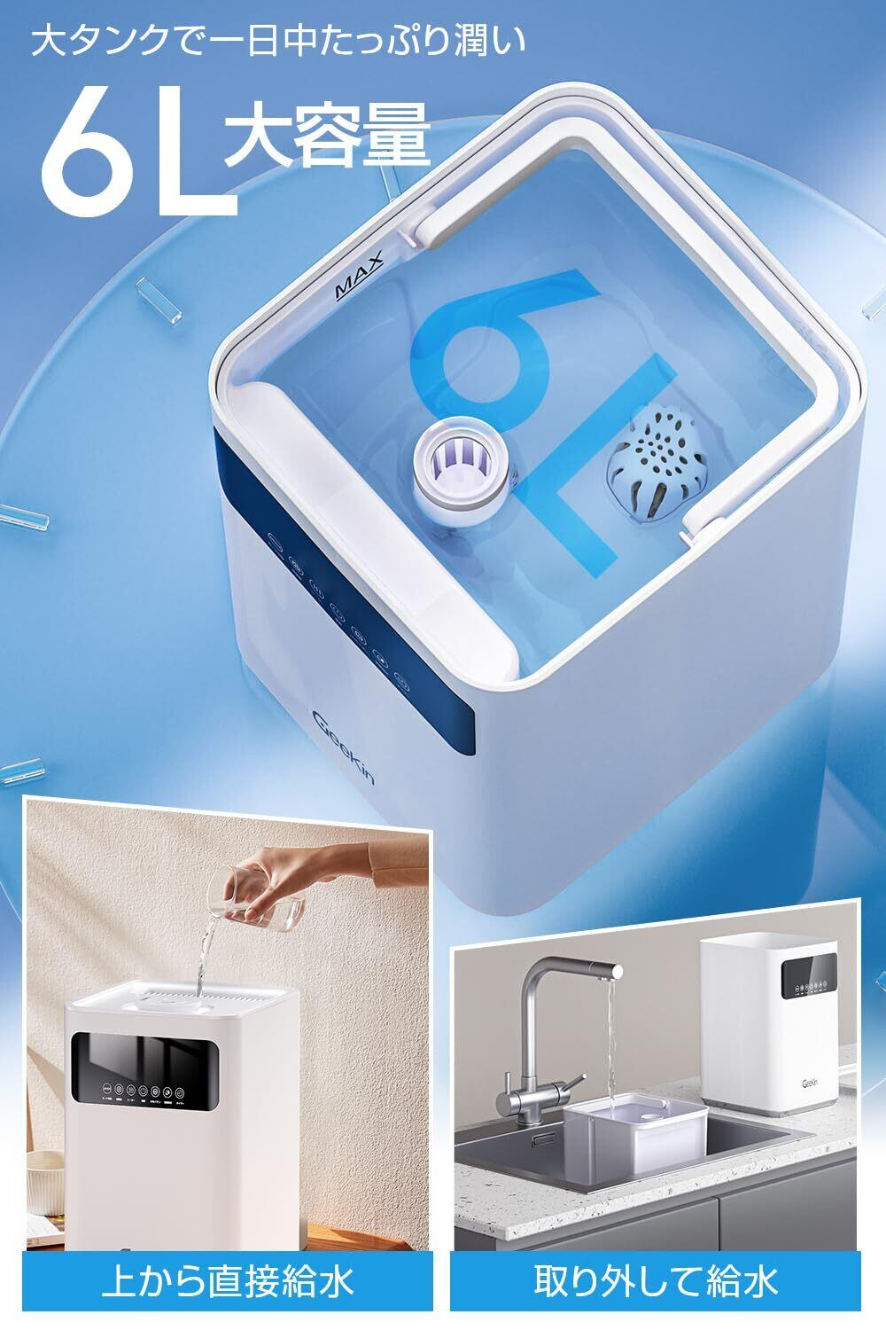 【2025新登場・大画面】 加湿器 大容量 6L 知能恒湿 ハイブリッド加湿器 加熱式 & 超音波式 7.0インチ大画面 AIスマート アロマ対応 4重除菌 100℃高温除菌 550ml/h マイナスイオン 静音 省エネ 上から給水 空気清浄機能 お手入れ簡単 空焚き防止 水漏れ防止 リモコン付き タイマー 乾燥対策 卓上 寝室/リビング/オフィス/業務用/オフィス