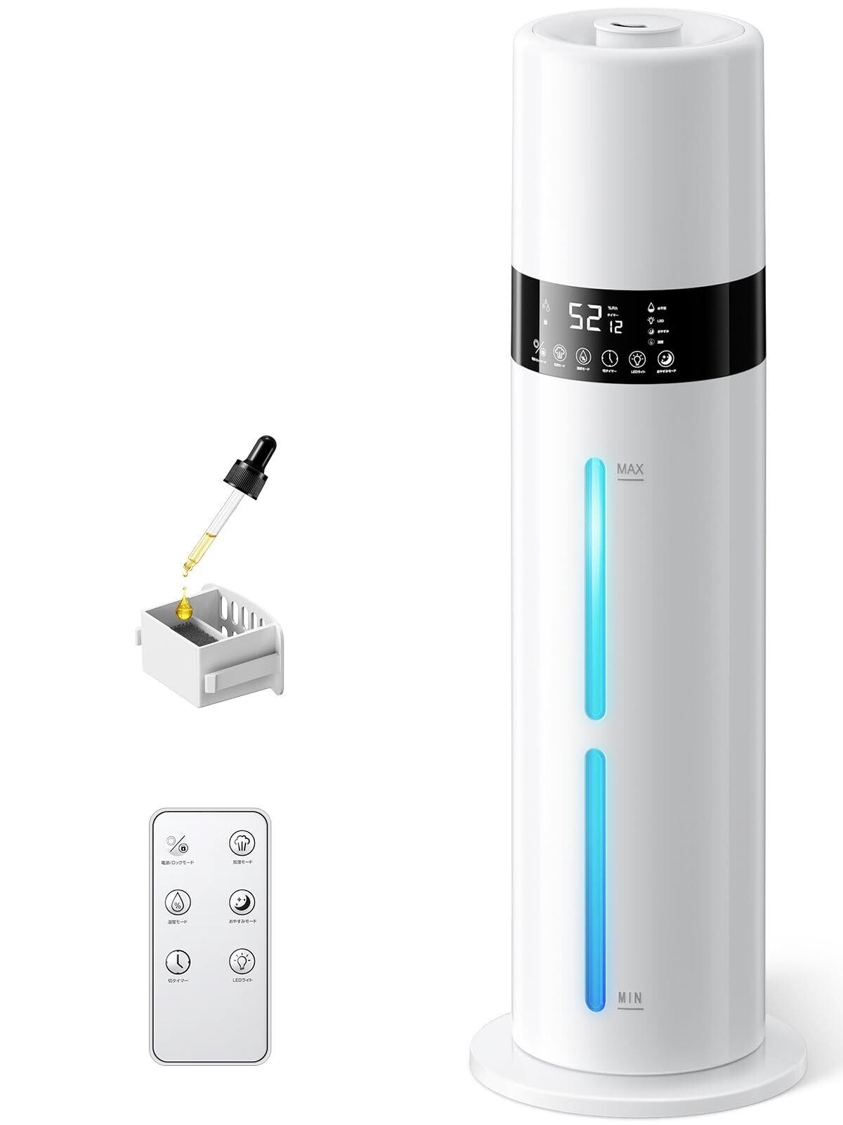 【数量限定】加湿器 大容量 8L 6~35畳対応 【銀イオン素材&次亜塩素酸水】 上から給水 タワー式 静音 超音波加湿器. アロマ対応 水漏れしない 省エネ 超微細ミスト3段階調節 360度吹き 72時間連続 12時間切タイマー 7色LEDライト おやすみモード チャイルドモード リモコン付き お手入れ簡単 空焚き防止 花粉/乾燥対策 寝室/リビング/オフィス/部屋 PSE認証済