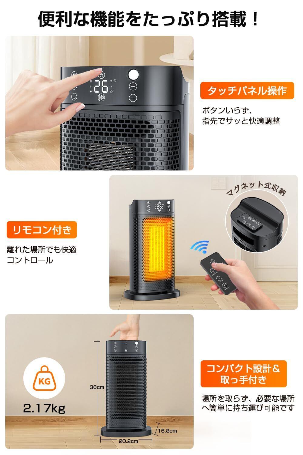 【2022最新】セラミックファンヒーター 【2025冬新登場・1秒速暖・AI自動制御・省エネ】 セラミックファンヒーター 大風量 1200W 首振り 電気ストーブ 人感センサー 低騒音 3段階温度調整 立体送風 暖房 節電 12hタイマー 高濃度マイナスイオン空気清浄 LEDディスプレイ表示 転倒OFF 寒さ対策 寝室/トイレ/洗面所/脱衣所/オフィスに適用 (ブラック)
