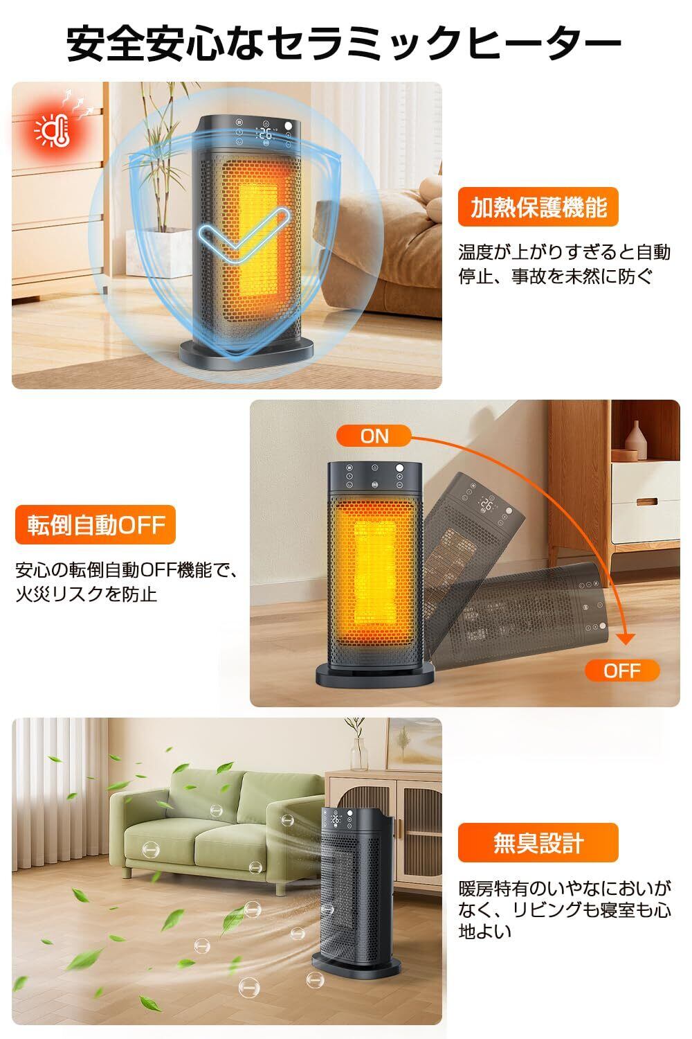 セラミックファンヒーター 【2025冬新登場・1秒速暖・AI自動制御・省エネ】 セラミックファンヒーター 大風量 1200W 首振り 電気ストーブ 人感センサー 低騒音 3段階温度調整 立体送風 暖房 節電 12hタイマー 高濃度マイナスイオン空気清浄 LEDディスプレイ表示 転倒OFF 寒さ対策 寝室/トイレ/洗面所/脱衣所/オフィスに適用 (ブラック)
