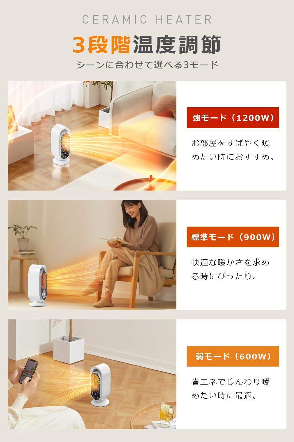 セラミックヒーター 【2025冬新開発・LCDディスプレ表示・マイナスイオン】 セラミックファンヒーター 小型 2秒速暖 600W/900W/1200W 3段階温度調整 タイマー付き 節電対策 電気ストーブ 足元 デスク下 暖房器具 省エネ 大風量 多重過熱保護 転倒OFF コンパクト PSE認証済 窓下結露/リビング/オフィス/寝室/トイレ/脱衣所