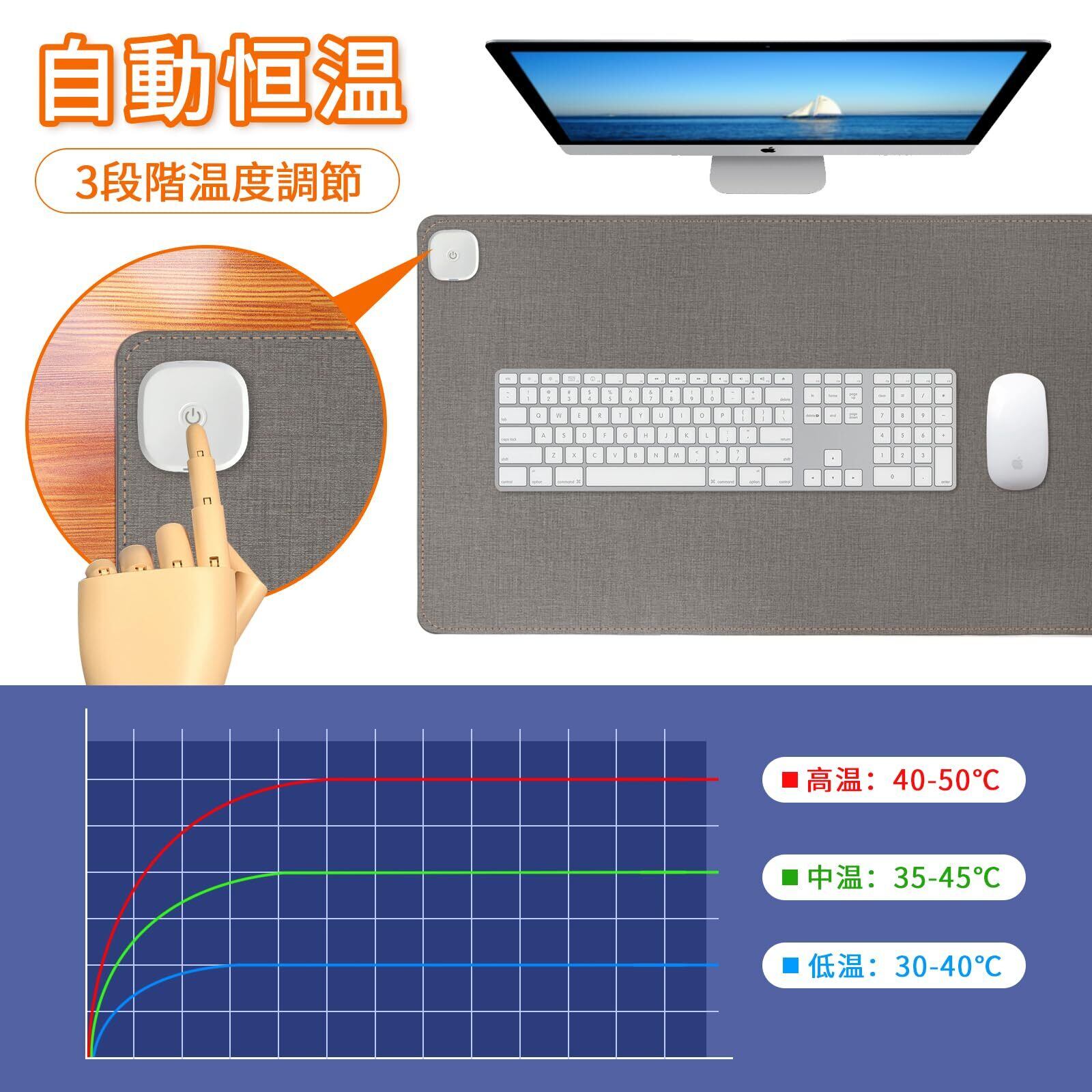 加熱マウスパッド ホットマットデスクマット大型 加熱 冷え対策 防水 電熱 速热 電気マット 3段階の温度調節 4h自動電源オフ オフィス/在宅勤務/宿題をする PVCレザー 33*80cm 超大発熱面積