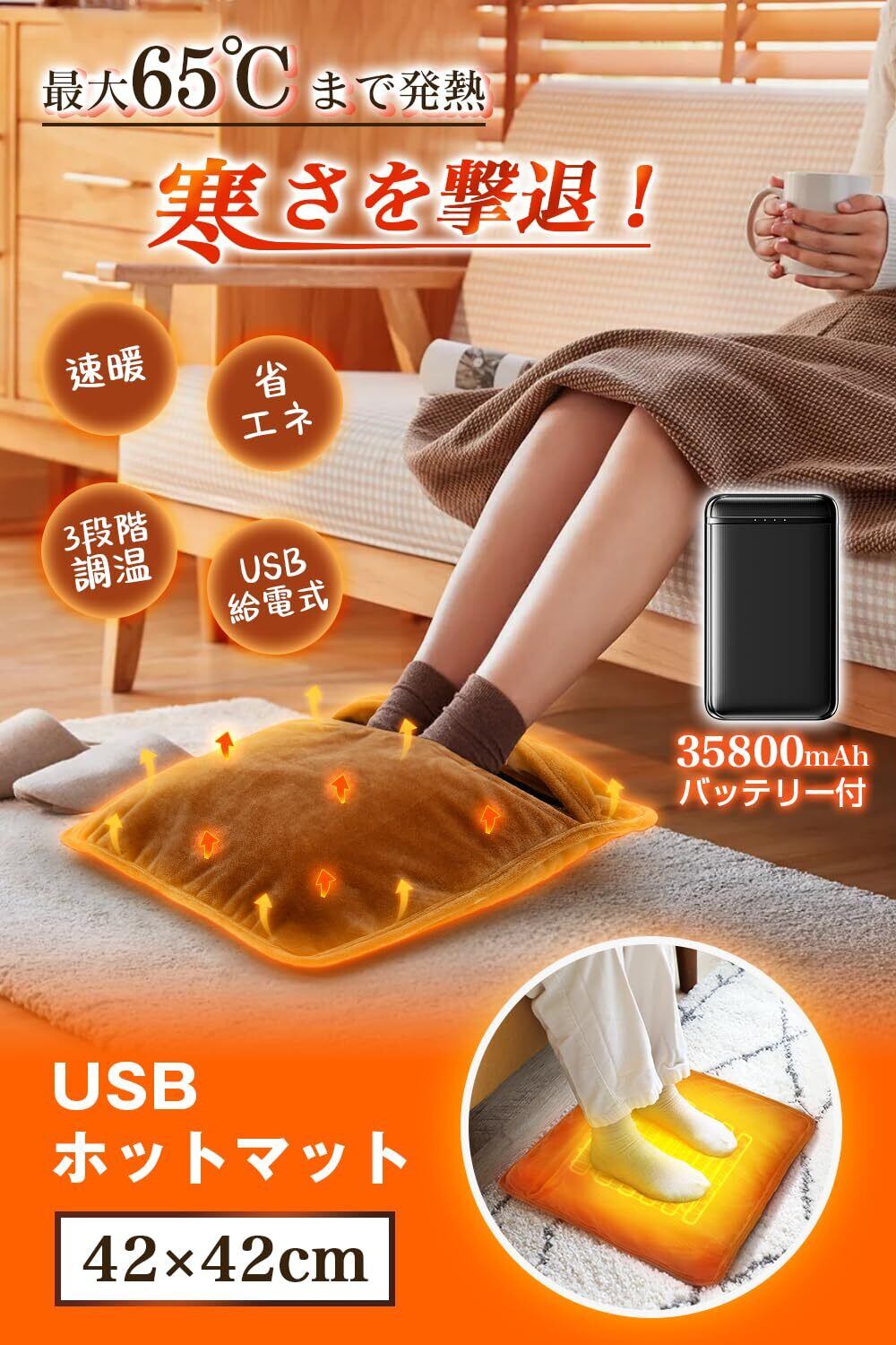 【在庫セール】ホットマット 一人用 速暖 【2025冬新登場・35800mAh大容量バッテリー付】 フットウォーマー USB 給電式 3段階温度調節可能 65℃極暖 電気足温器 足入れタイプ コードレス 防寒グッズ 電気マット 足元あったかグッズ 約42×42cm ダニ退治 車内用/自宅/オフィス/アウトドアに適用 (ブラウン(バッテリー付き))