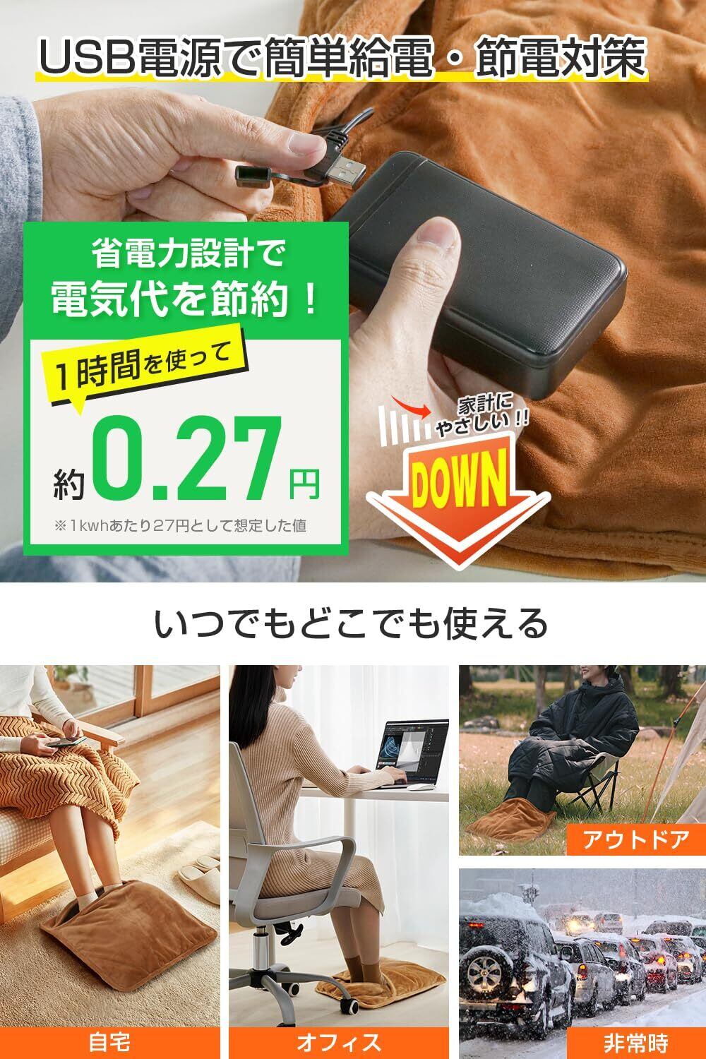 【最大20時間使用可能な大容量バッテリー付き】便利なUSB給電式足温器は、モバイルバッテリーなどのUSB電源で暖かくなるので、自宅やオフィスはもちろん、アウトドアやレジャーなどコンセントのない場所でも手軽に使えます。普段だけでなく、 災害時や非常時の防寒アイテムとしても活躍します。35800mAh大容量・軽量・コンパクトな高性能バッテリー付属しております。バッテリーをフル充電すると、10-20時間の連続使用が可能です。 フットウォーマー本体にバッテリー収納ポケットがついており、持ち運びも便利!(※使用時間は使用方法、環境などの要因によって大きく変動します。)