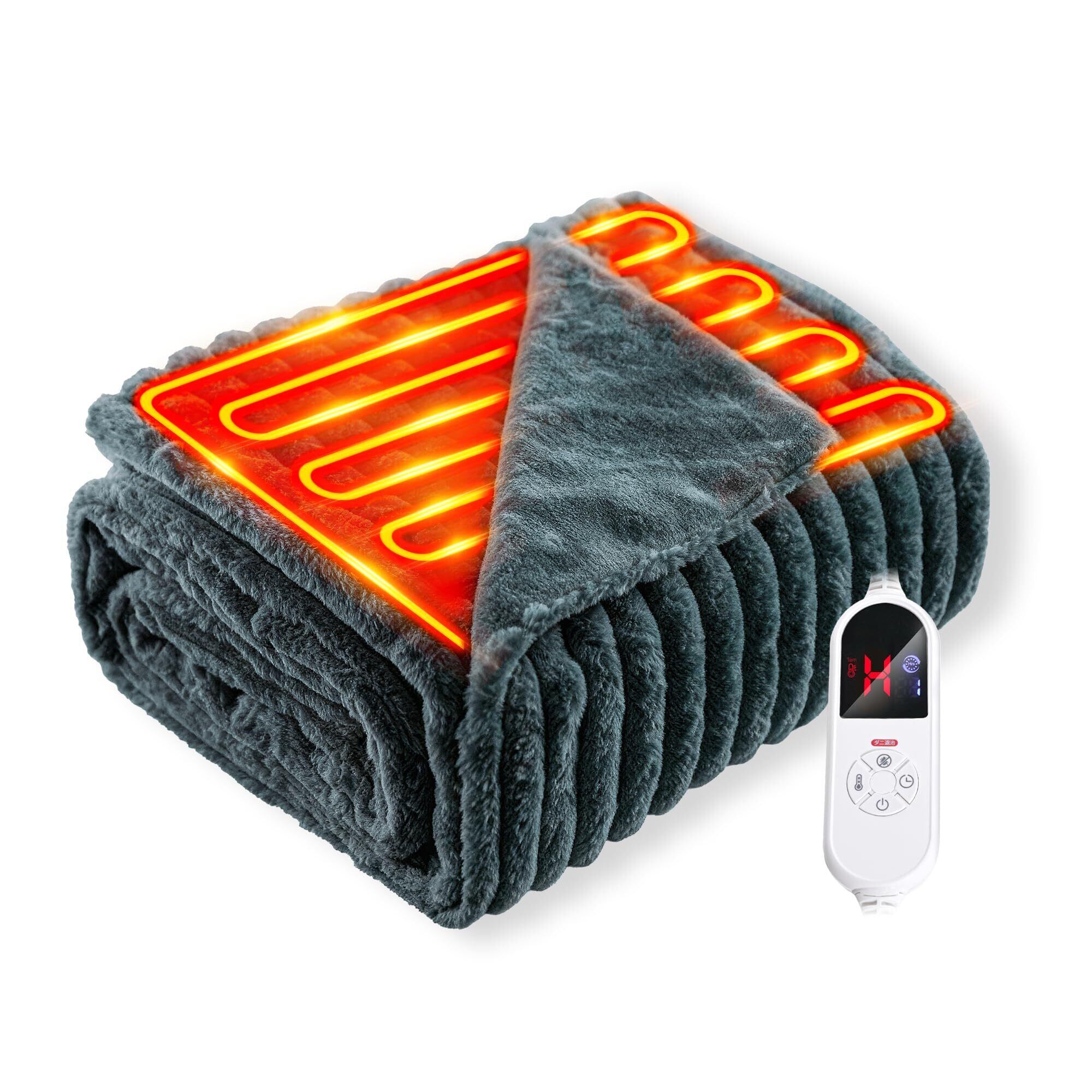 電気毛布 掛け敷き兼用 【2025冬新モデル・AI過熱保護機能&二枚合わ仕様】 電気ブランケット フランネル+ラビットファー調素材 10段階温度 1-12Hタイマー 省エネ 電磁波カット 電気敷き ひざ掛け 速暖 でんきもうふ 洗える ダニ退治 暖房器具 寒さ対策 自宅 オフィス キャンプ (ダークグレー, 190x130cm)